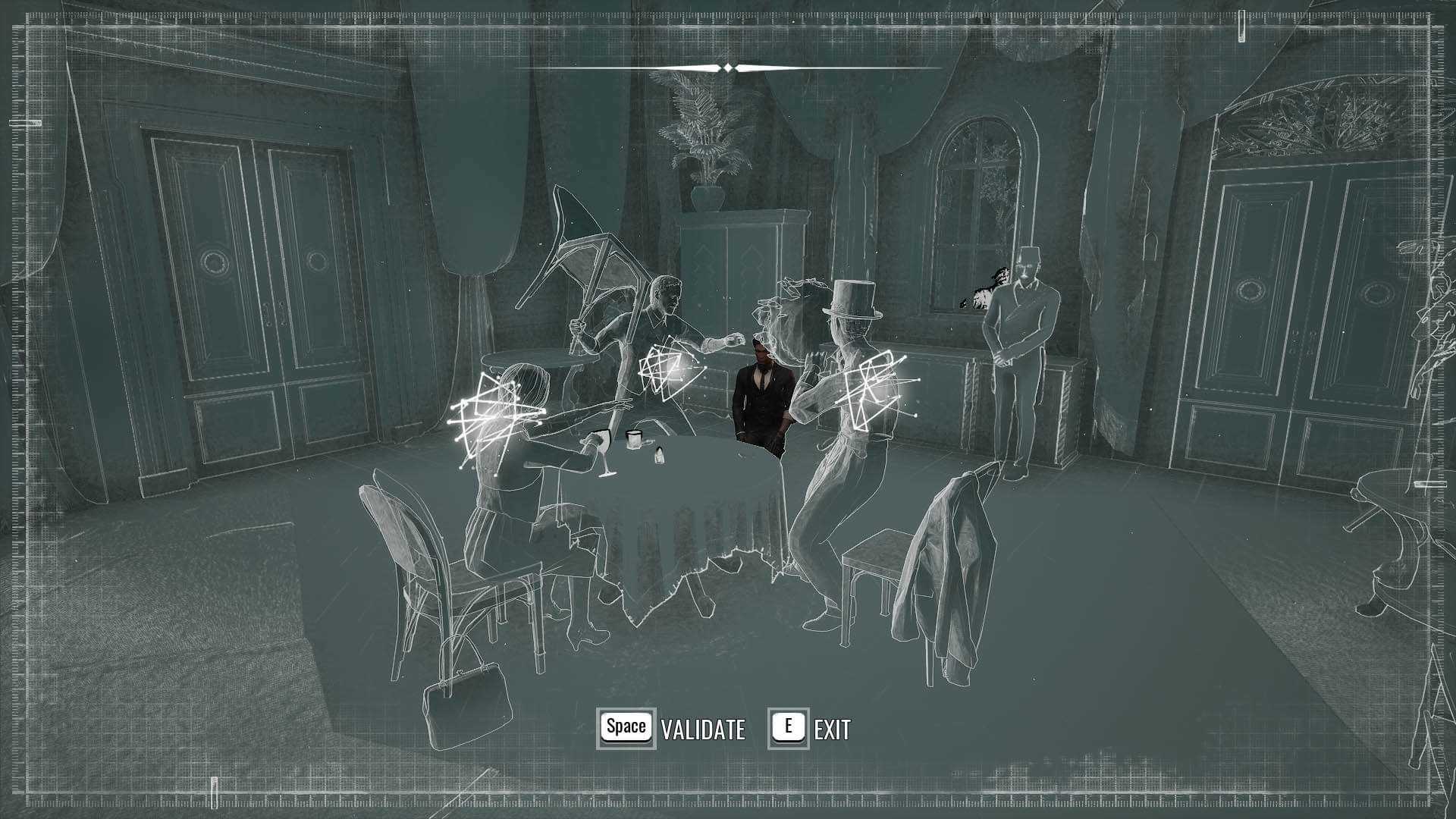 You can find Lucia upstairs near the paintings. She admits to watching the seance but doesn’t tell you much more than Lord Craven or Luka did. Still, the information you’ve gathered from the witnesses is enough to return to the room and recreate the scene as shown below.