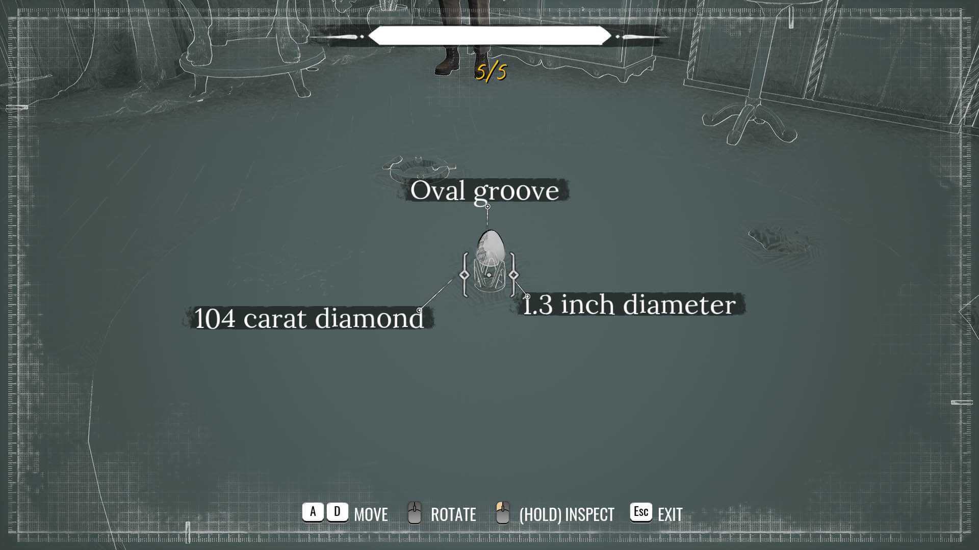 You have quite a bit of snooping to do now. Examine Emma’s neck, the diamond, and the handbag. Check the jewelry box on the dressing table to find it has a false bottom. Examine the moth ring, plain ring with the Latin inscription, pound notes, and makeup. Inspect the lock to the neighboring room where Luka is being kept to discover the lock is simple and could easily be picked.