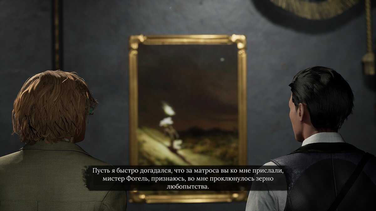Выбираем понравившийся портрет. Это действие ни на что не повлияет. Задание прервётся и герою потребуется помочь лорду Крейвену найти похищенный алмаз.