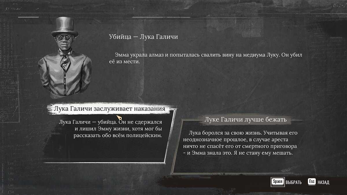 Соединяем в чертогах разума все доводы как показано на скриншоте выше и решаем судьбу Луки Галичи: отпустить убийцу или вызвать полицию.