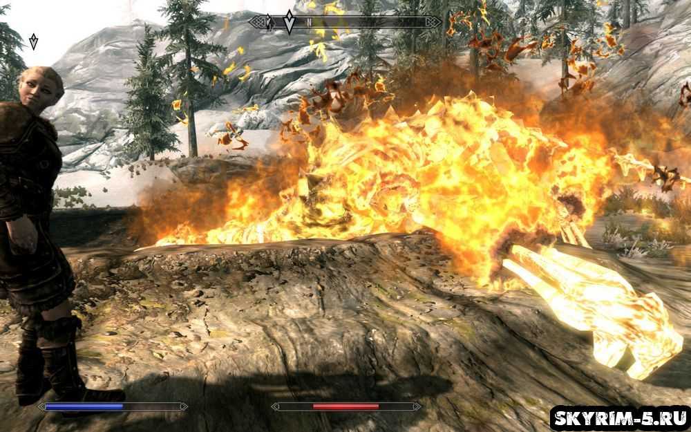 Прокачанный мороз позволит выкашивать в ближнем бою всякую мелочь вроде волков и тормозить крупную «дичь», которую затем можно добивать из лука, или ждать, пока за вас это сделает ваш компаньон. Кстати, в ветке магии Разрушения можно прокачать умение ставить магические ловушки. На мой взгляд, очень полезное и естественное умение для Вора. Но повторюсь, даже минимальная прокачка отдельных веток магии Разрушения отнимает много перков.