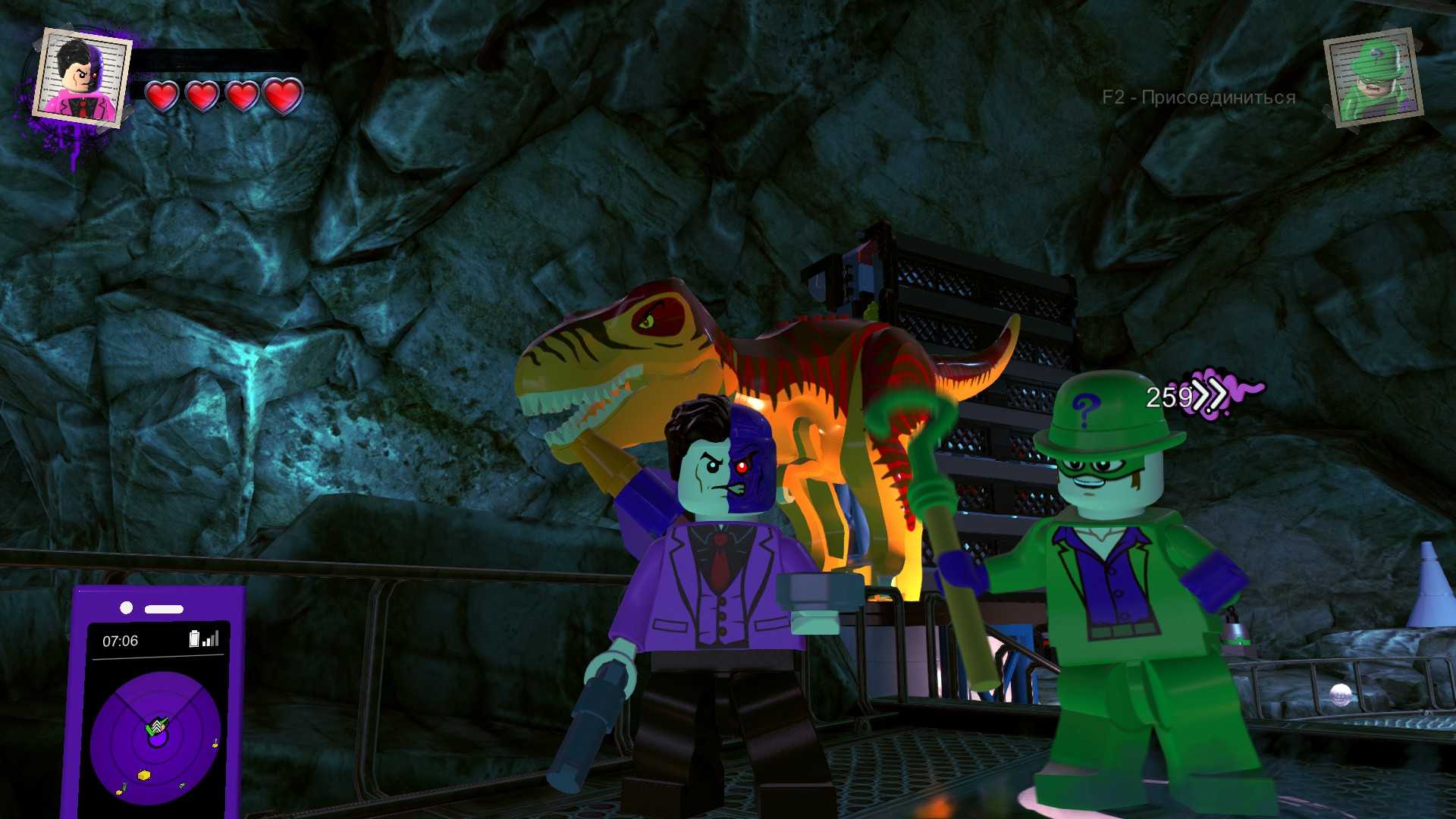 Добавить Загадочника и Двуликого в отряд в пещере Бэтмена Выбираем Загадочника и Двуликого в пещере Бэтмена на острове Уэйна под особняком. Оба персонажа откроются после прохождения задания ”Хорошо быть плохим”