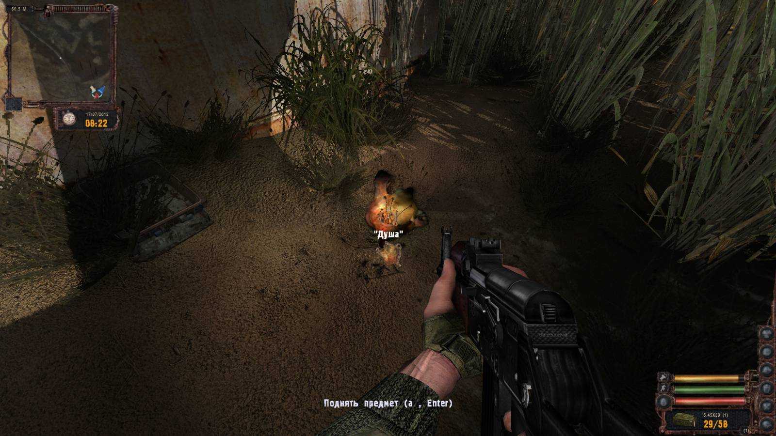 3)С самого начала игры у игрока в инвентаре имеется новенький калаш. Стоит продать его, поскольку с патронами данного калибра на локации очень туго. На вырученные деньги делаем апгрейд-ставим у техника контейнер под артефакт и используем найденную Медузу. Теперь небольшие накопления радиации будут выводиться артефактом.
