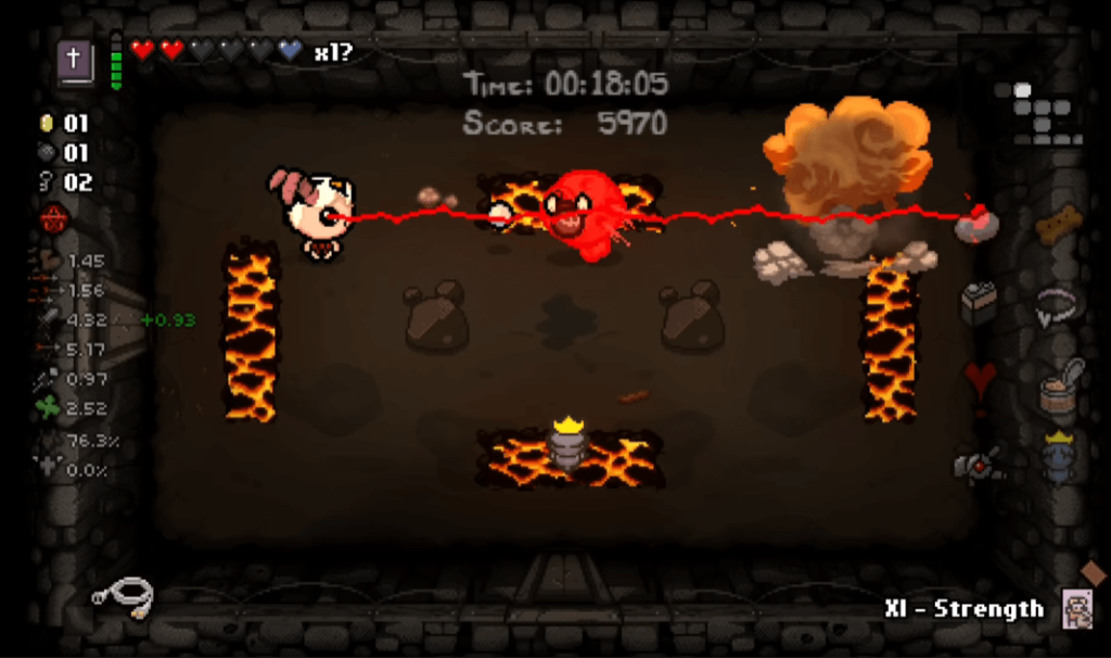 Бомба взорвалась рядом со стеной, после чего открылся секретный проход? В этот момент ты понимаешь: эта игра основана на системе «риск и награда». Пожертвовать ли бомбами, чтобы искать секреты, или же использовать их на врагах? Обменять ли собственное здоровье на артефакт в сделке с дьяволом, или же понадеяться на свои силы? Используете ли вы деньги и здоровье на игровые автоматы, ожидая обильный выигрыш? Но их можно сохранить на гарантированные предметы из магазина! Жертвенная комната требует отдать целое сердце для прохода (половиной, если вы умеете летать), но награда может того стоить.
