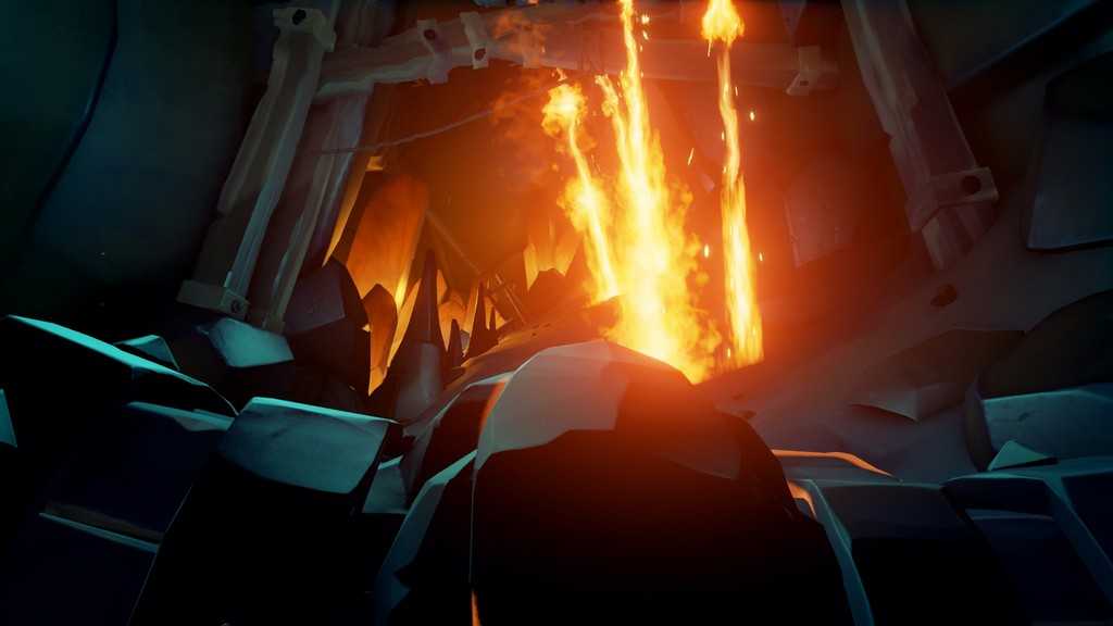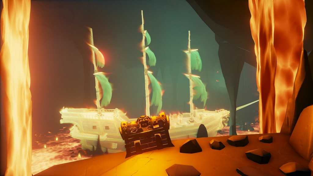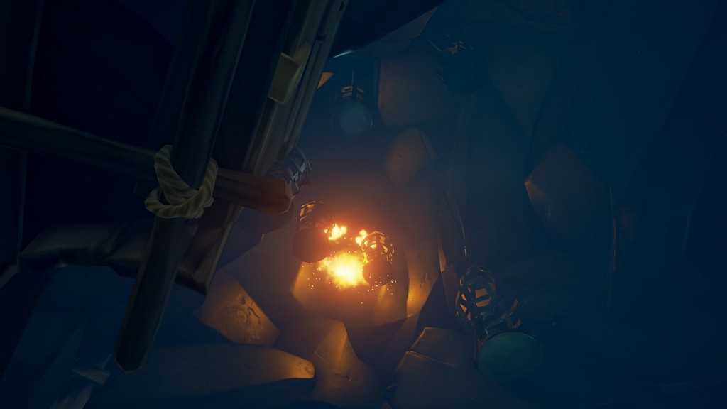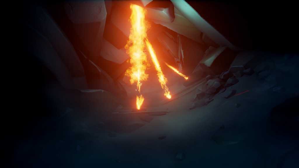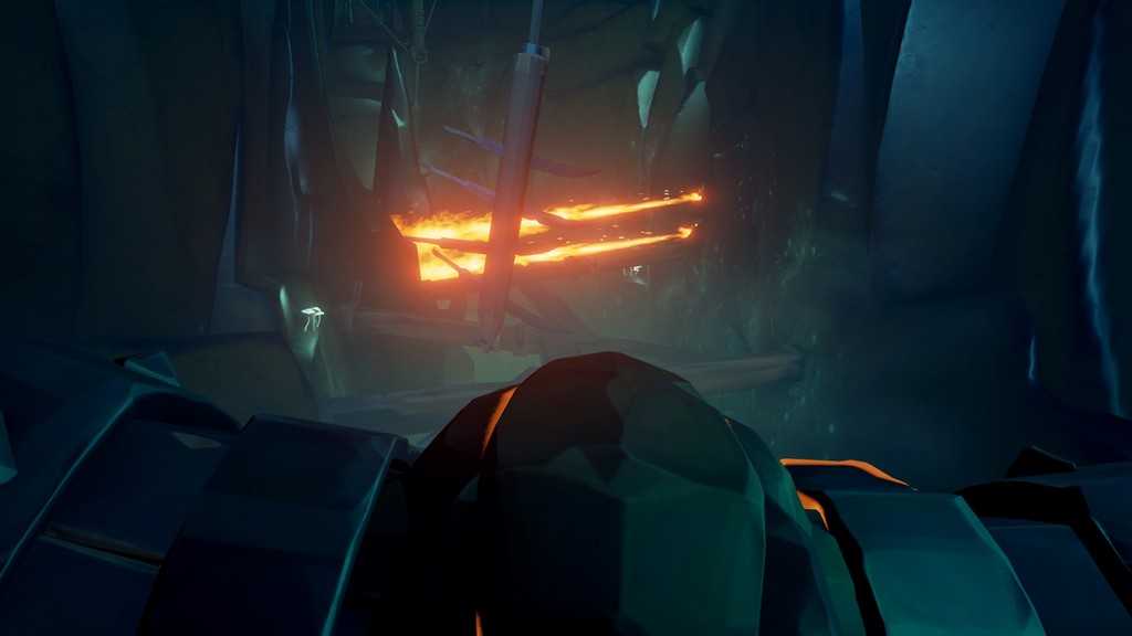 А дальше нас ждёт якорь со шлюпа, окружённый огнём. Мой вам совет, сначала поднимите его наполовину, дождитесь пока пропадёт огонь и поднимайте дальше.