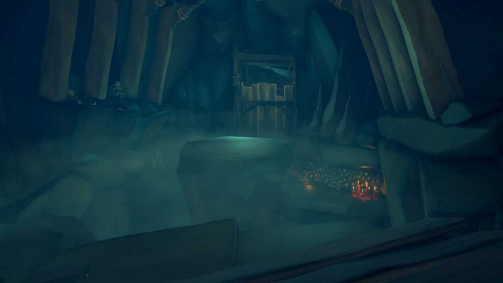 Дальше нас ждёт битва со скелетами, и, если раньше можно было оставить одного с мушкетоном и быстренько открыть дверь, то в этот раз так не получится и придётся убить всех, а в конце и мини-босса. И всё только потому что тут якорь с галеона, и как некоторые знают, в одиночку его очень долго поднимать.