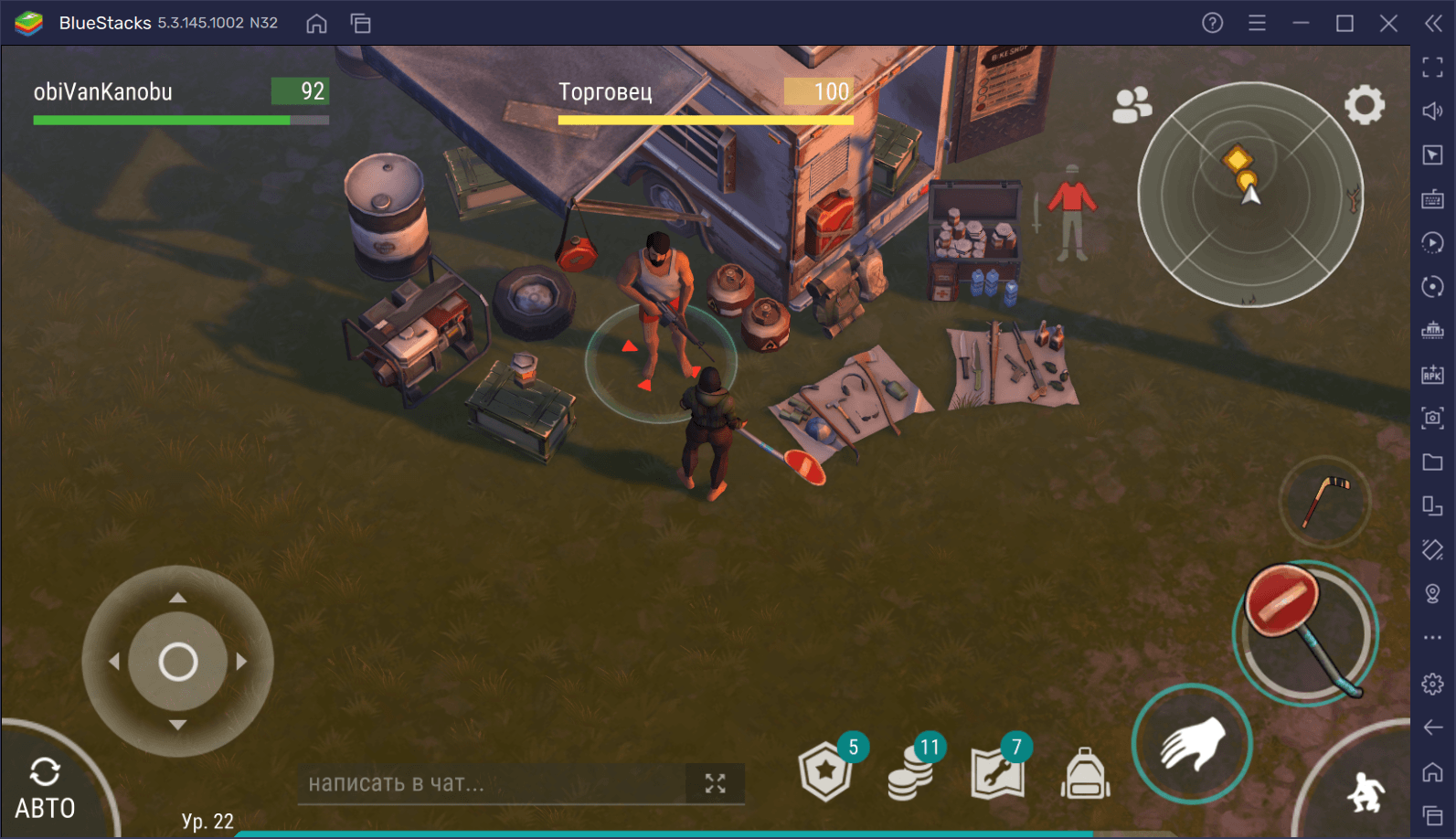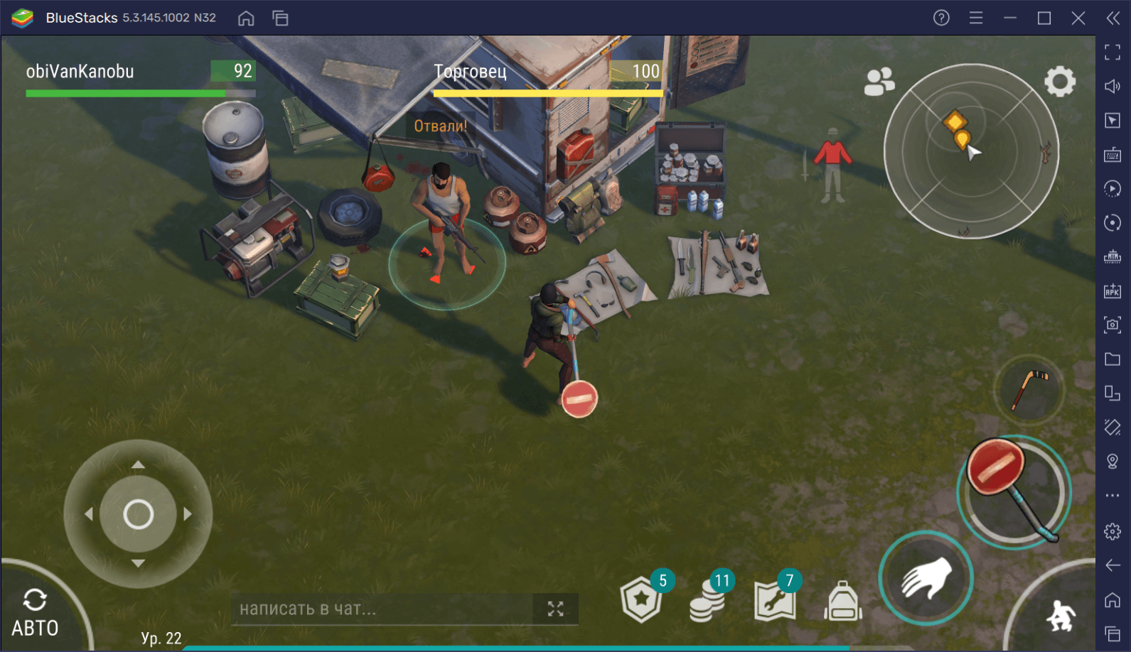 - После того, как у вас появится радио, на карте начнет появляться торговец, у которого можно обменять ресурсы на оружие. Берите на бартер различные ресурсы. За 20 слитков металла вы получите дробовик, за 20 дерева торговец даст вам мачете, а за 20 хорошей кожи — биту с гвоздями.