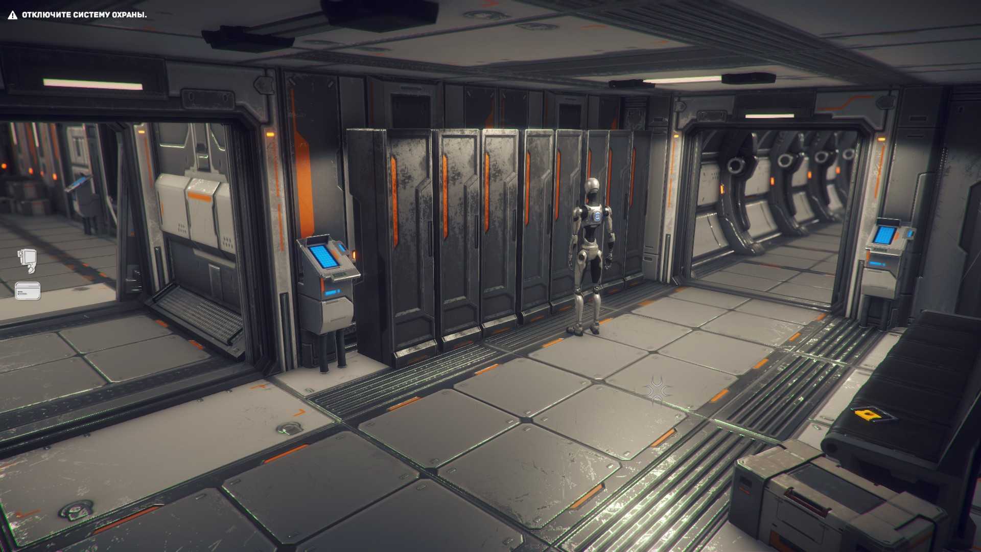 Пройдите к шкафу на заднем плане, в правом углу. Осмотрите его и примените ключ, найденный в квартире информатора. Ар-Ти откроет шкаф. Нужно взломать код. Вы видите кнопки с буквами – A, B, C, D, E, F, G. На самом деле кнопки связаны с нотами. В противоположном углу зала стоит музыкальный автомат. Запустите его, переключите на следующую мелодию. Эта мелодия будет состоять из четырёх звуков. Как раз столько символов в пароле. Запомните мелодию и подберите её на слух на кнопках кодового замка.