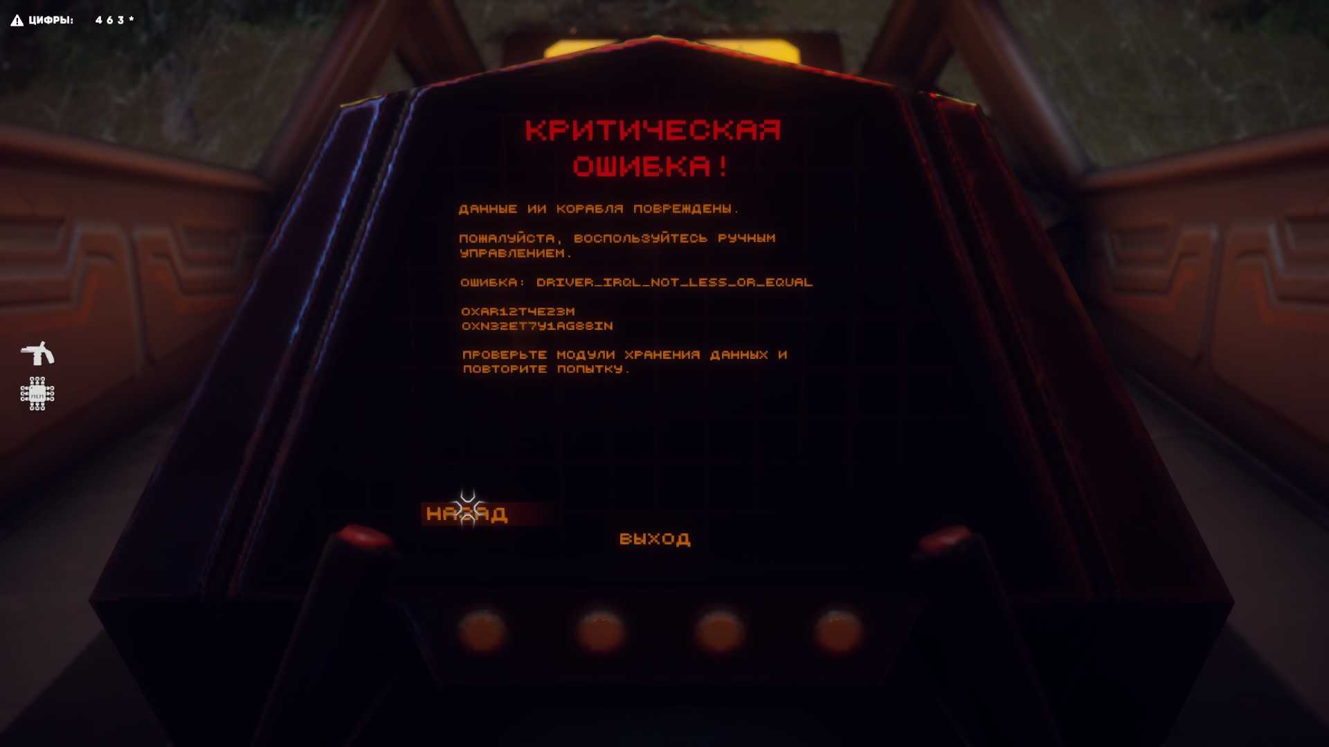 На бортовом компьютере шаттла имеется надпись при самодиагностике: “DRIVER_IRQL_NOT_LESS_OR_EQUAL”. Это ошибка Windows, связанная в основном с некорректно работающими драйверами видеокарты либо проблемами с ОЗУ. Возможно, это связано с тем, что к выходу игры – у AMD продавалась RX4xx серия видеокарт, на момент выхода – имела сыроватый драйвер, из-за которого и происходила частенько эта ошибка в разных проектах на ПК игроков. (спасибо пользователю Infearnal Amun)
