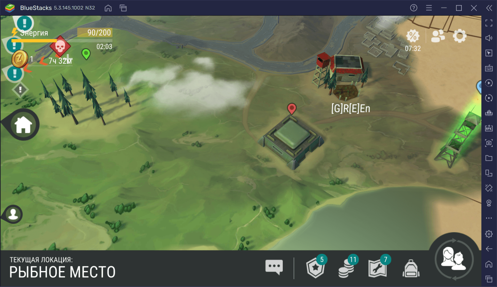 Процесс рыбной ловли происходит следующим образом: вы встаете на точку, которая отмечена на карте иконкой в виде рыбы. Первым делом вам необходимо прикормить место. Далее вы забрасываете удочку и выжидаете поклевку. Как только она случилась — нажимаете кнопку E (если играете в Last Day on Earth на ПК с BlueStacks) и проходите мини-игру. Вам нужно удерживать значок рыбы в движущемся поле до заполнения зеленой шкалы. Если все прошло успешно, улов вам обеспечен.