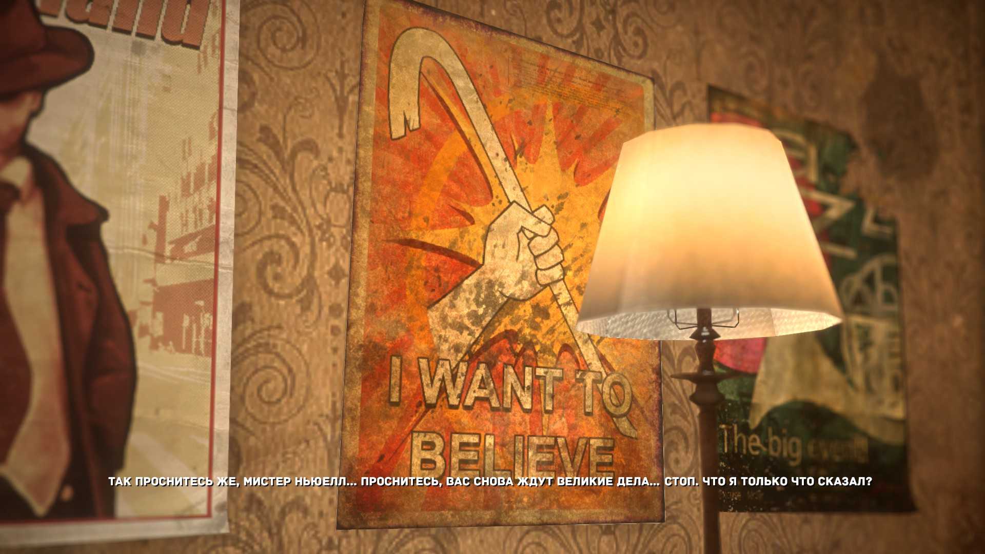 Шутливый душераздирающий плакат “I want to bilieve” и цитирование Арти обращения к Моргану Фримену мистического G-Man’а из Half Life в баре Ядро отсылает нас к Half Life 3 и недежде, что она наконец появится на свет.