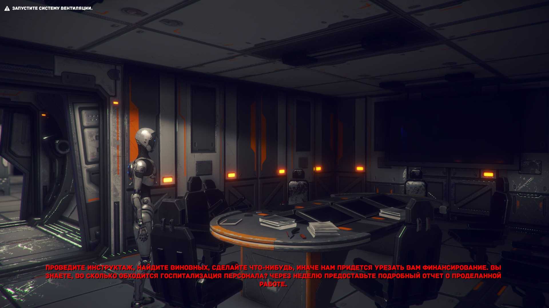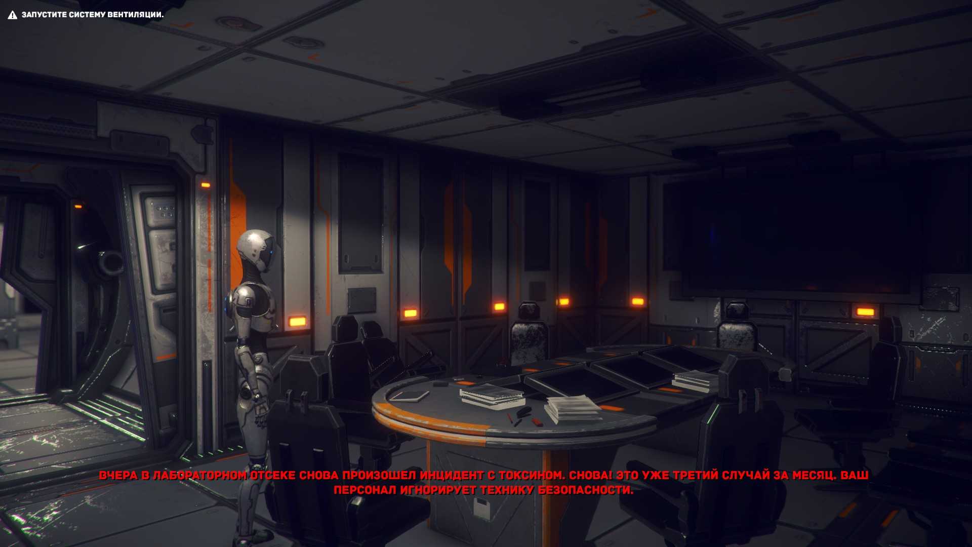 Follow this wing to the very end. There will be a door without a handle on the left, on which you need to use an adjustable wrench. There is a tablet at the very end of the tunnel, behind the bars. Examine it first. Then use the item to open the door and enter the room.