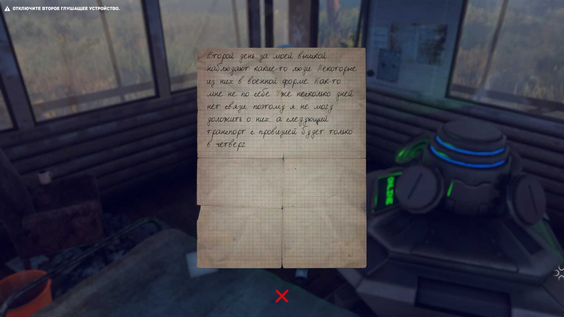 Единственная записка находится на вышке Генри, главного героя Firewatch. В записке, Генри повествует о своих подозрениях вокруг.