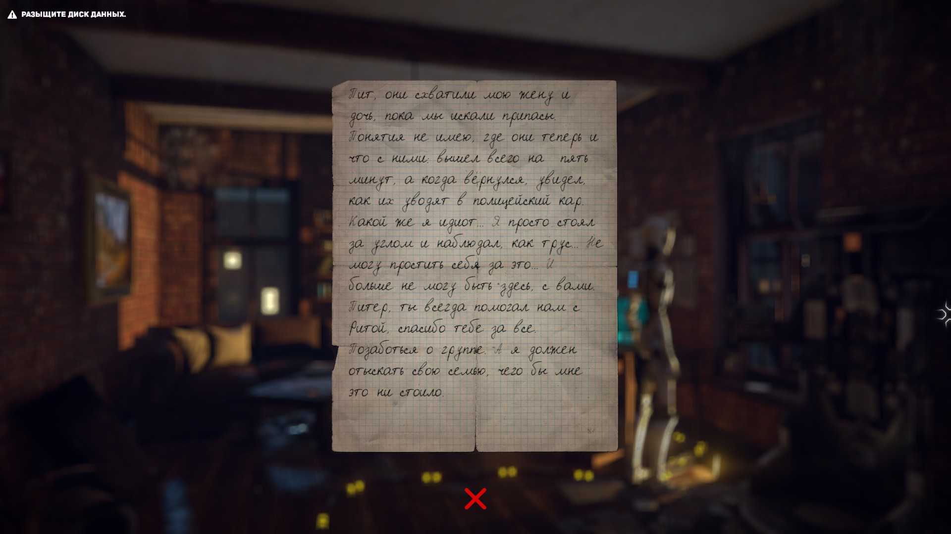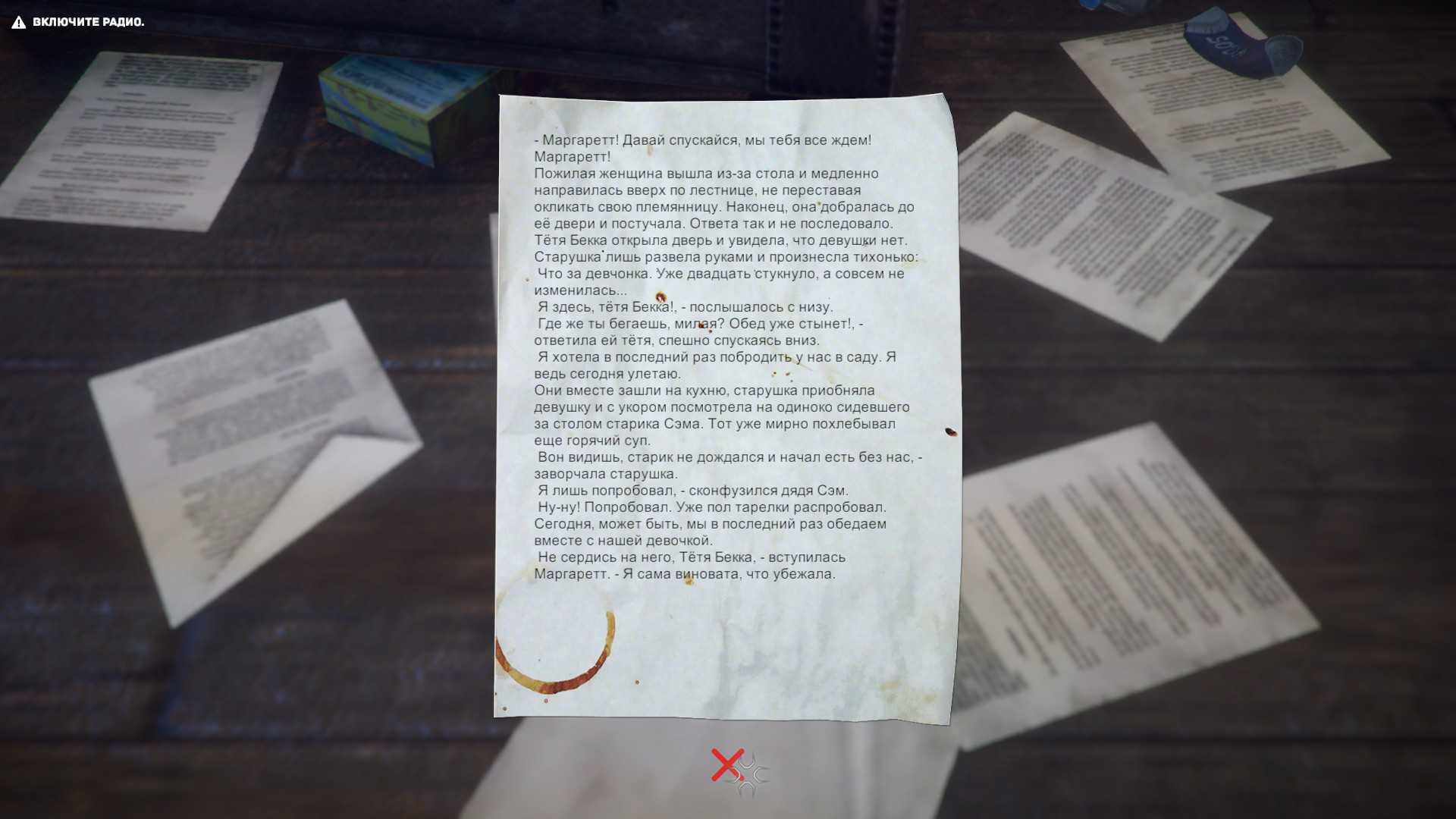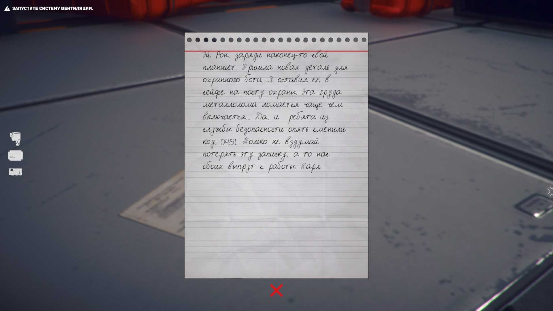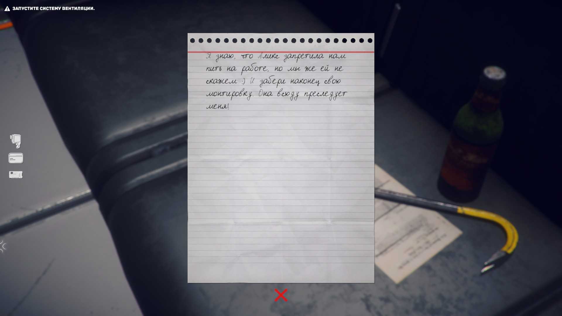 Первая и единственная записка у дивана на полу. Зарисовочка-отрывок из “Вознестись в небытие” в стиле фантастики от Артема Нетягина, разработчика из Common Games (в чью мы игру собственно и играем). Найти и прочитать можно здесь: