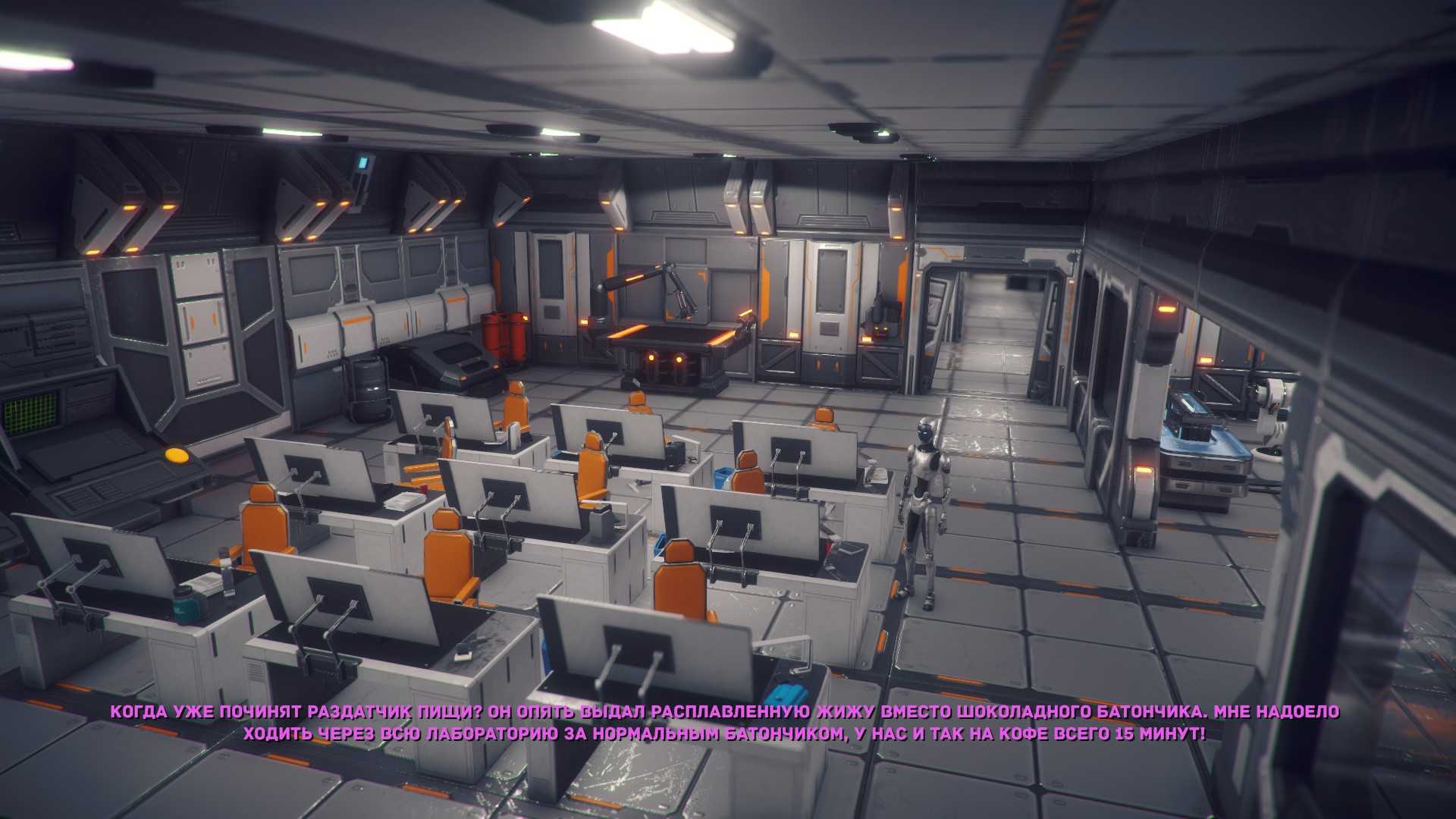 b) Второй состоит из аудиодневника и жалобы девушки на то, что перерывы маленькие, всего 15 минут и на сломанный раздатчик пищи, из-за которого шоколадные батончики плавятся. Связи не нашел.