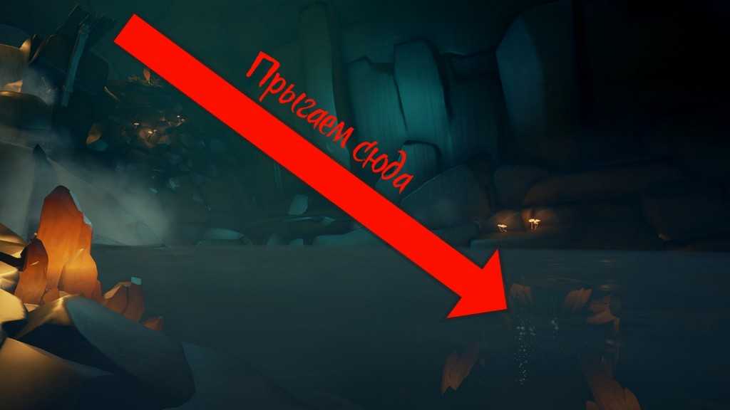 Подходим к последнему факелу и видим, что дальше путь нам предстоит под воду.
