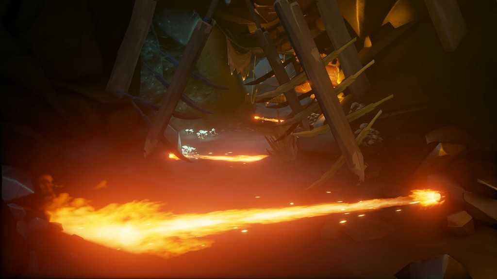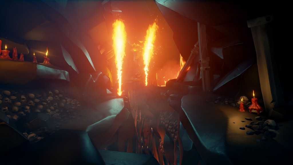 За следующей дверью снова огонь, но теперь на полу, а потом что-то похожее на якорь галеона, оно тоже извергает огонь и, к тому же, крутится.