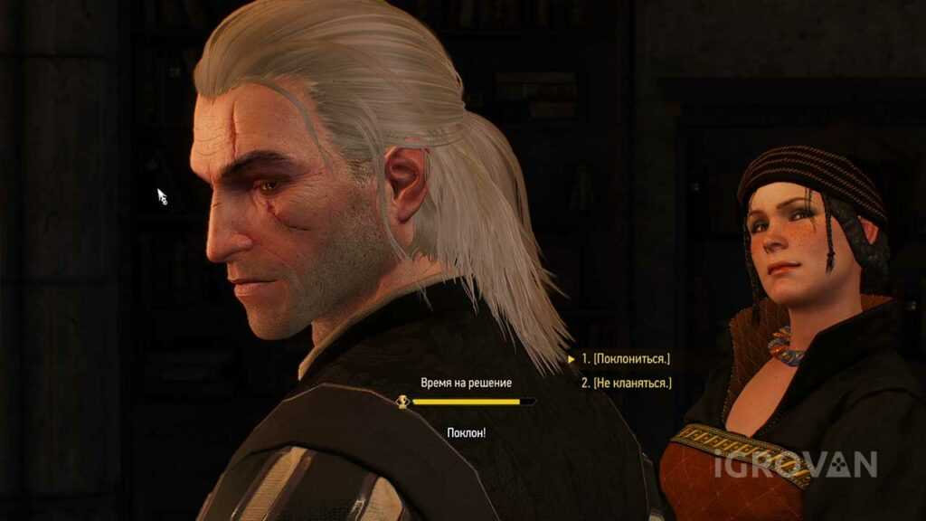 В самом начале аудиенции у имератора вам предстоит выбрать: поклониться его величеству или нет. С одной стороны, ведьмаки никогда не склоняли голову перед королями и всегда придерживались нейтралитета. Тем более, для Геральта император Нильфгаарда — всего лишь расколдованный Йож, отец Цири. С другой стороны, если отказаться от поклона, камергер получил сильный нагоняй. А ведь он отнесся к Геральту по-человечески: не грубил и вёл себя максимально вежливо.