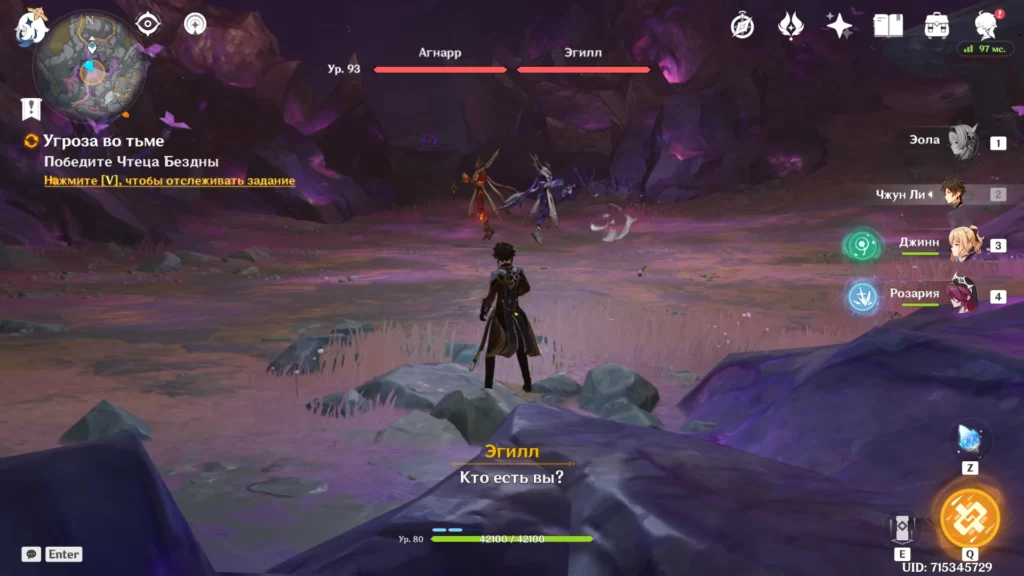 Между появлениями скважин нещадно лупим самого босса. Когда его здоровье достигнет отметки примерно 10-15%, урон по нему перестанет проходит, а Паймон закатит истерику. В этот момент нам поможет таинственная незнакомка и бой закончится.
