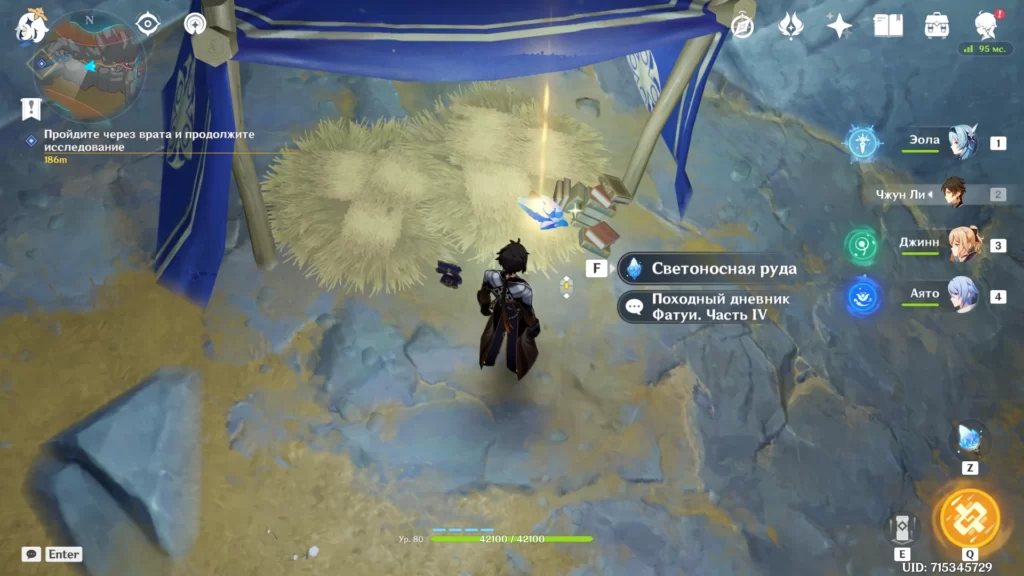 Спускаться в сам Разлом не придется, так как вход в подземелье находится на поверхности в локации Ущелье Фуао. На скриншотах ниже показано его точное расположение. Однако пройти сюда сразу же не удастся – вначале вам нужно будет решить головоломку, чтобы открыть проход к вратам данжа.