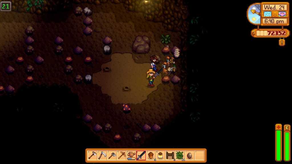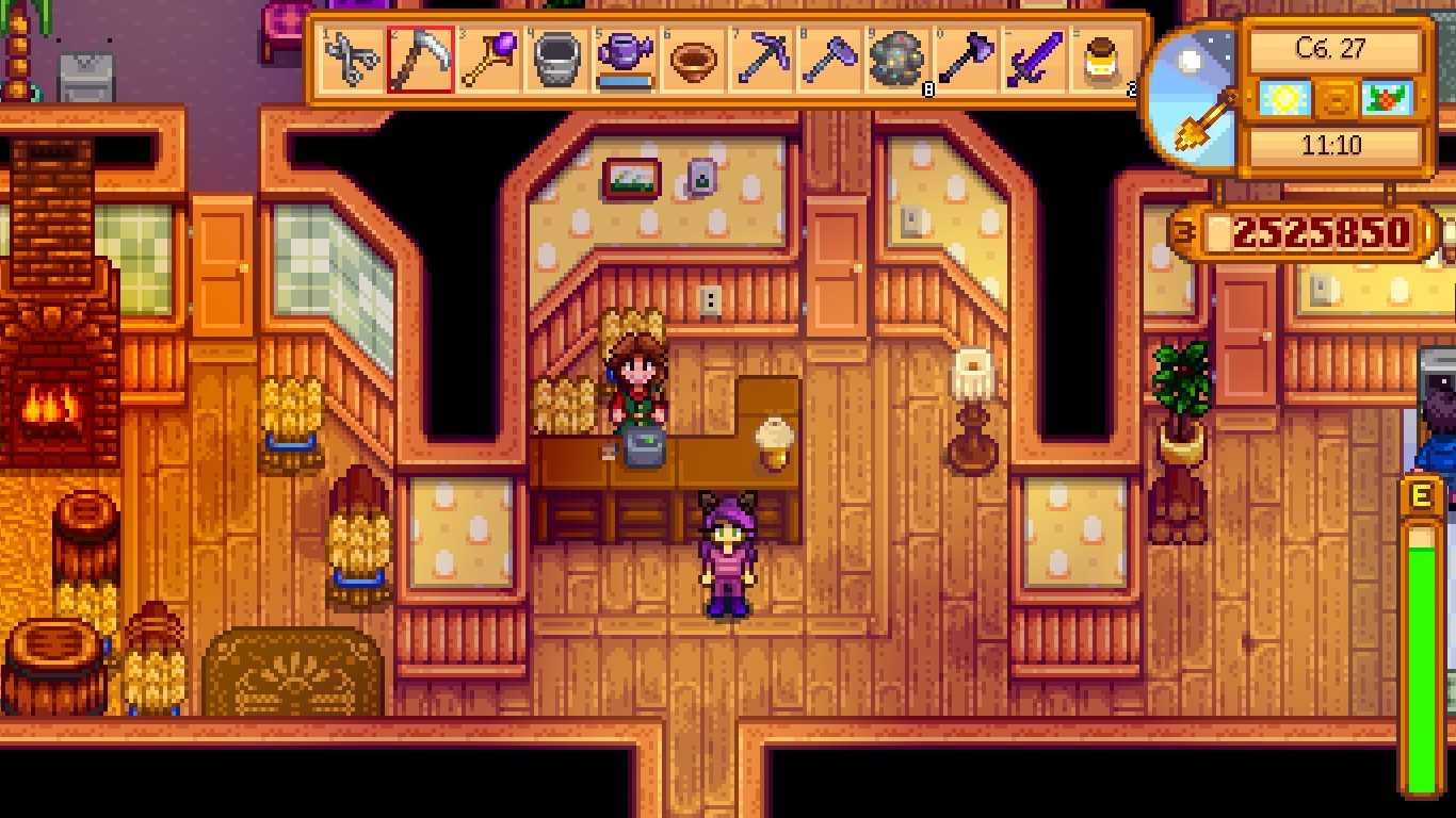 Неизбежно в инвентаре вашего друга окажется что-то, в чем вы нуждаетесь. Вы можете прихватить что-нибудь из того, что у него есть, порывшись в чем-то вроде комода у него в хижине. Если вы пригласите друзей в одну из ваших сохраненных игр, они создадут нового персонажа и начнут с базового комплекта инструментов, начального количества ежедневной энергии и с отсутствия каких-либо навыков. Моему другу пришлось рыться в одежде и оружии, которое я сбросил, чтобы найти что-то, что позволило бы ему спуститься на самые низкие уровни шахт. Кроме того, он обнаружил, что у него недостаточно энергии, чтобы поливать все культуры, которые растут у меня на ферме.