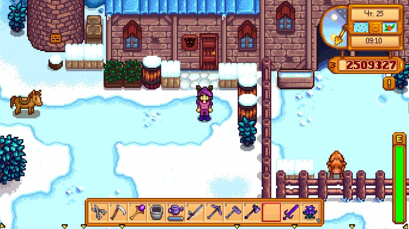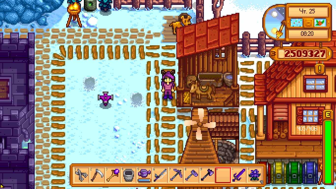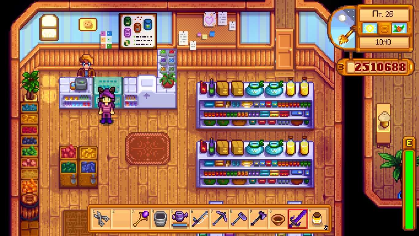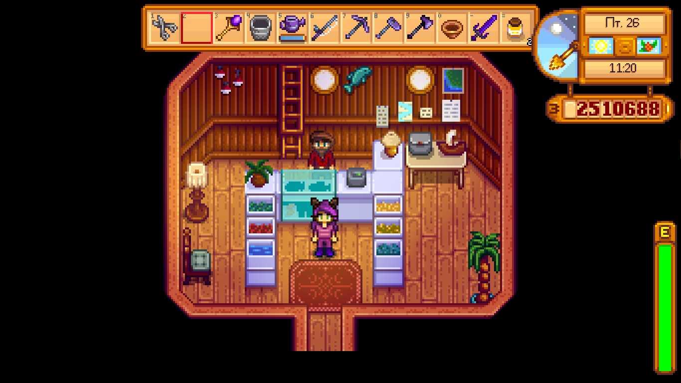 Вполне логично, что в кооперативной игре время будет течь для всех одинаково, вне зависимости от того, что кто-то сортирует свой инвентарь, а кто-то просматривает магазинчик Пьера. Я не замечал, как много времени я тратил, делая те же вещи в одиночной игре. Возможно, я провел столько же дней в каком-нибудь меню, поставив игру на паузу. В кооперативном режиме время приостановить невозможно, и дни пролетают с огромной скоростью.