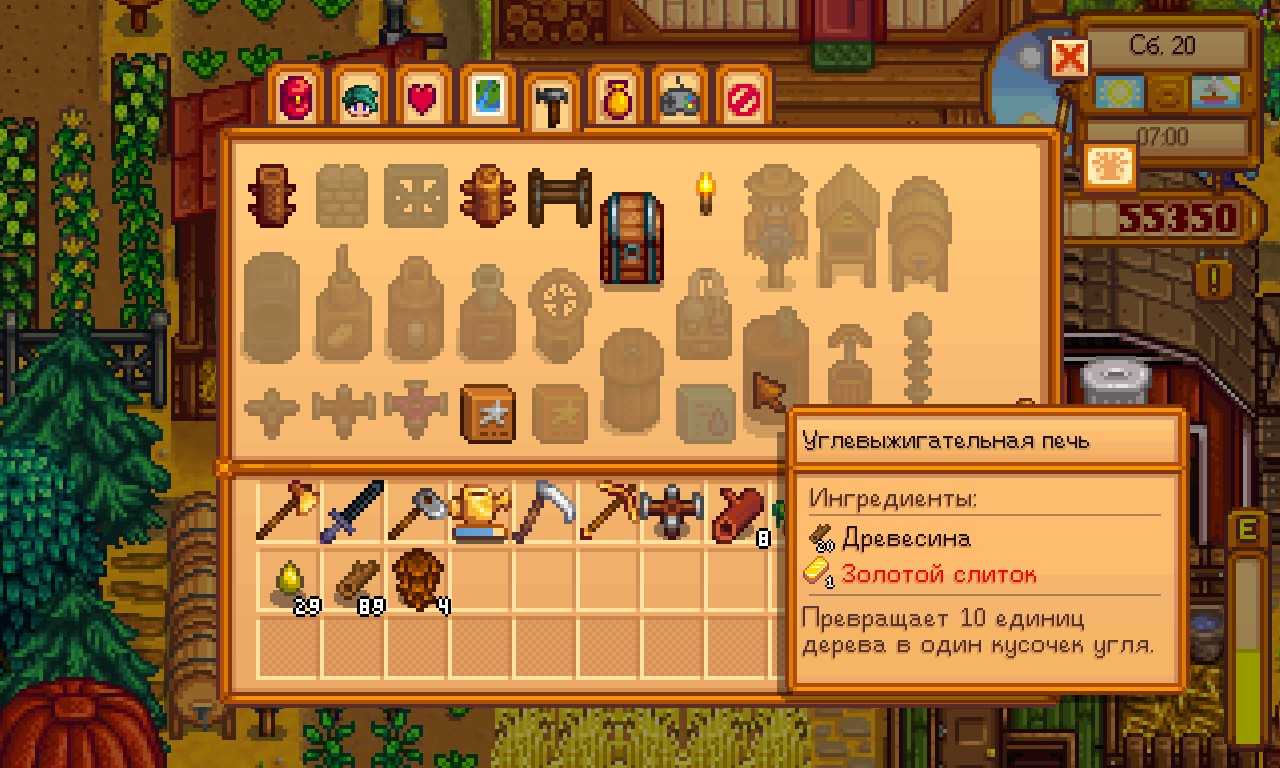 В самом начале игры будет действительно интересно попробовать продать все, что вы получаете, что не связано с сельским хозяйством. Вы могли бы это сделать, но более разумный вариант — создать несколько сундуков. Они стоят всего 50 штук дерева и являются идеальным местом для хранения вещей.