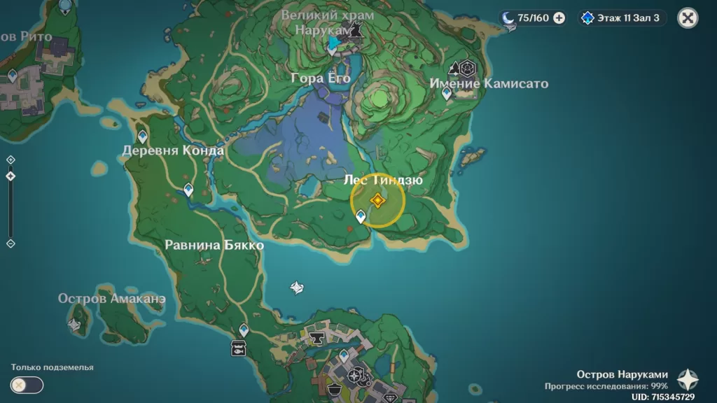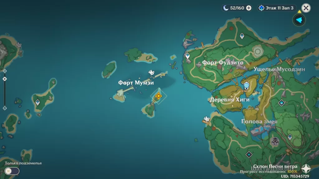 После разговора с самураем Сангономии, появится волноход. Воспользуйтесь им, чтобы добраться до острова Ватацуми. Плыть придётся на запад от острова Ясиори, через форт Мумэи. Отличным решением будет разблокировать все точки телепортации, что вы увидите по пути, и сразу поклониться статуе семи Архонтов.