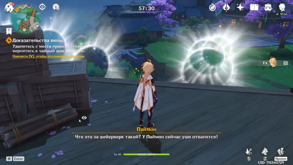 После напутственных слов от жрицы, отправляемся в чайный дом «Коморэ» на встречу со старыми знакомыми. Обсудив происходящее и определившись с дальнейшими действиями, идем к Ёимии за большим фейерверком. У нее конечно же кое-что для нас есть и они с легкостью нам отдает супер-большой фейерверк.