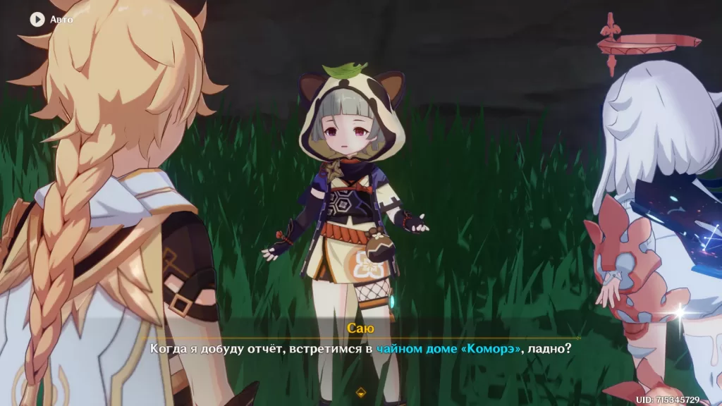 Вернувшись в чайный домик, рассказываем Томе и Аяке об успехе и ждем возвращения Саю.