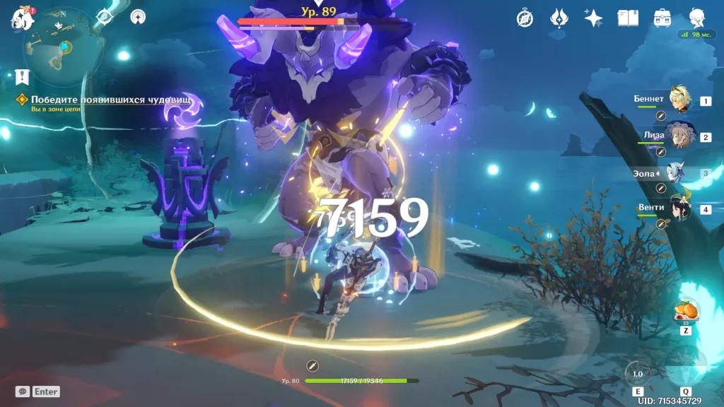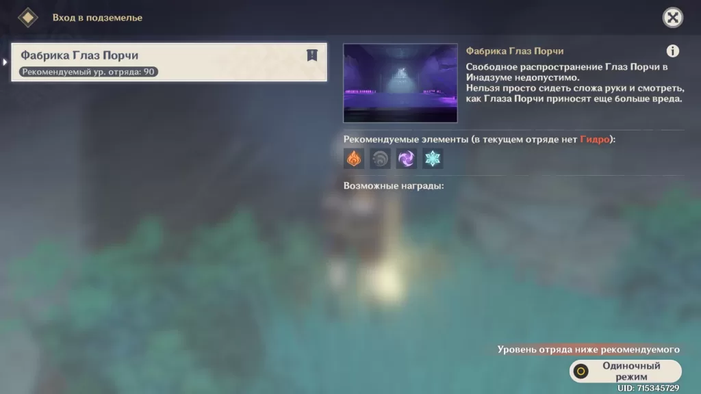 Отправляемся на остров Ясиори и находим вход в инстанс. Из рекомендуемых стихий для прохождения можно проигнорировать электро. Остальные желательно использовать, чтобы ломать щиты бойцов Фатуи.