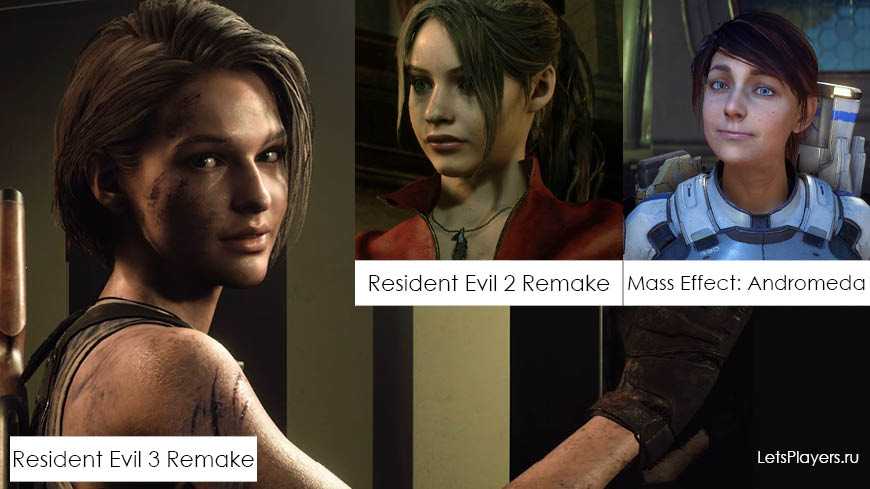 Сравнение лиц Джилл Валентайн (РЕ 3), Клер Редфилд (РЕ 2) и Сары Райдер (ME: Андромеда)