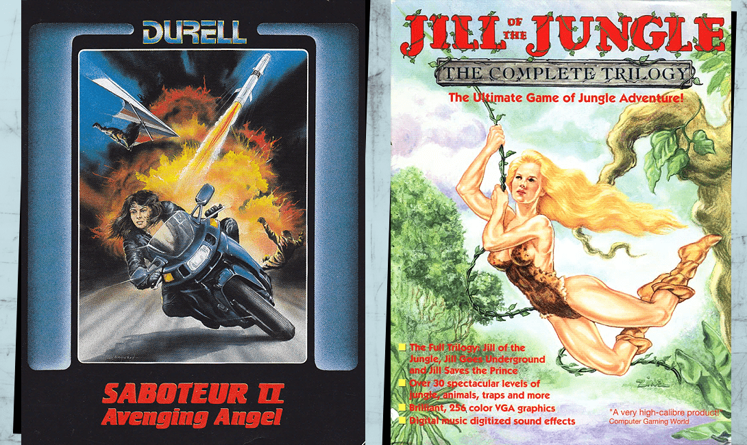 Принято считать, что Самус Аран из Metroid стала первой такой героиней, хотя это мнение можно и оспорить. Во-первых, половая принадлежность Самус никак не проявлялась во время прохождения игры, это мог быть кто угодно, ведь костюм скрывал все признаки. Во-вторых, на полтора года раньше появилась игра Alien Sector, с ровно таким же твистом, когда протагонист в конце снимал скафандр и выяснялось, что это девушка по имени Kissy. Ситуация с Saboteur II уже несколько отличается. Крутейшая Нина красуется на обложке и встречает нас на стартовом экране, а «Джилл из джунглей», будучи воительницей, уже сама отправляется на спасение прекрасного принца.