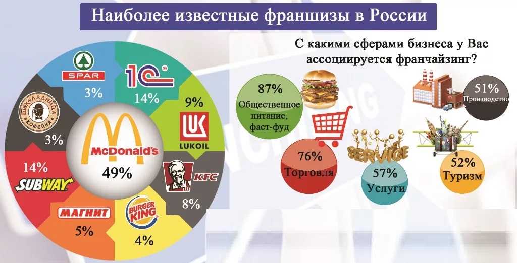 Самые популярные в России направления, по которым реализуют франшизы: