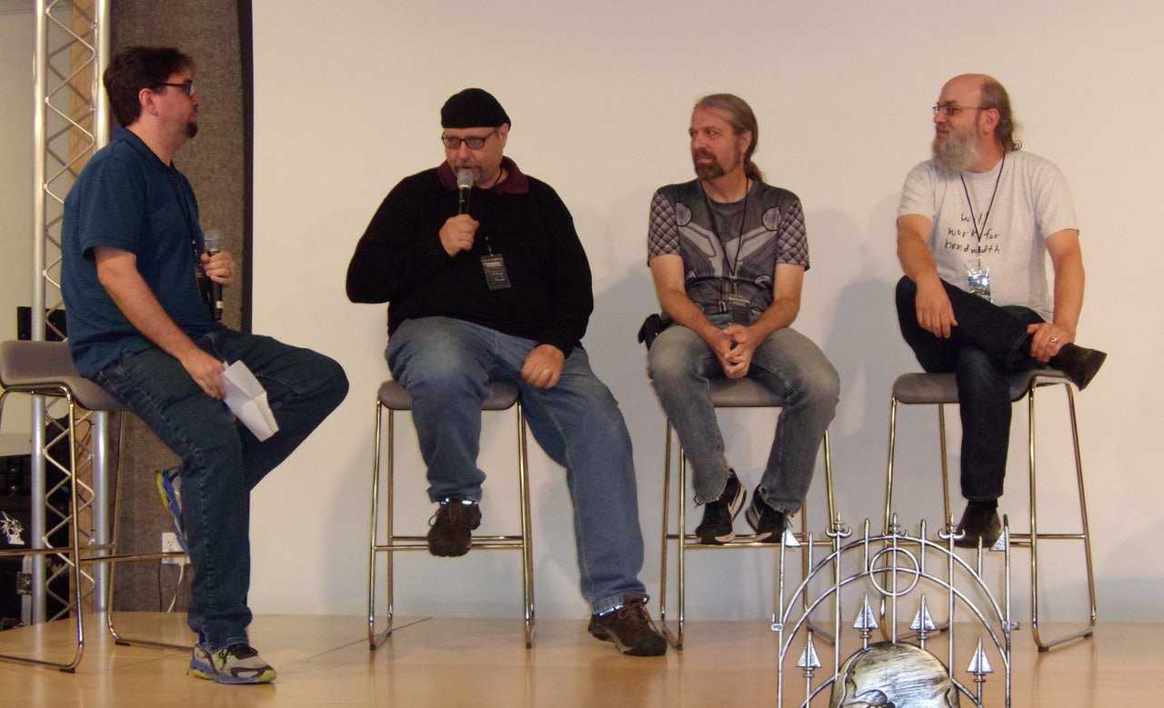 Фото: авторы Rogue Майкл Той (второй слева), Гленн Вичман (третий слева) и Кен Арнольд (четвёртый слева) / Kotaku