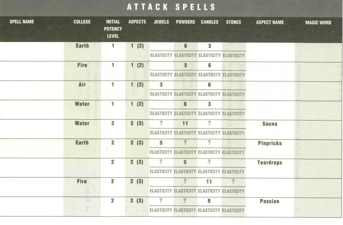 В этой игре, положившей начало целому поджанру RPG, каждое заклинание состоит из нескольких символов. Мануал отлично описывает значение каждого из них.