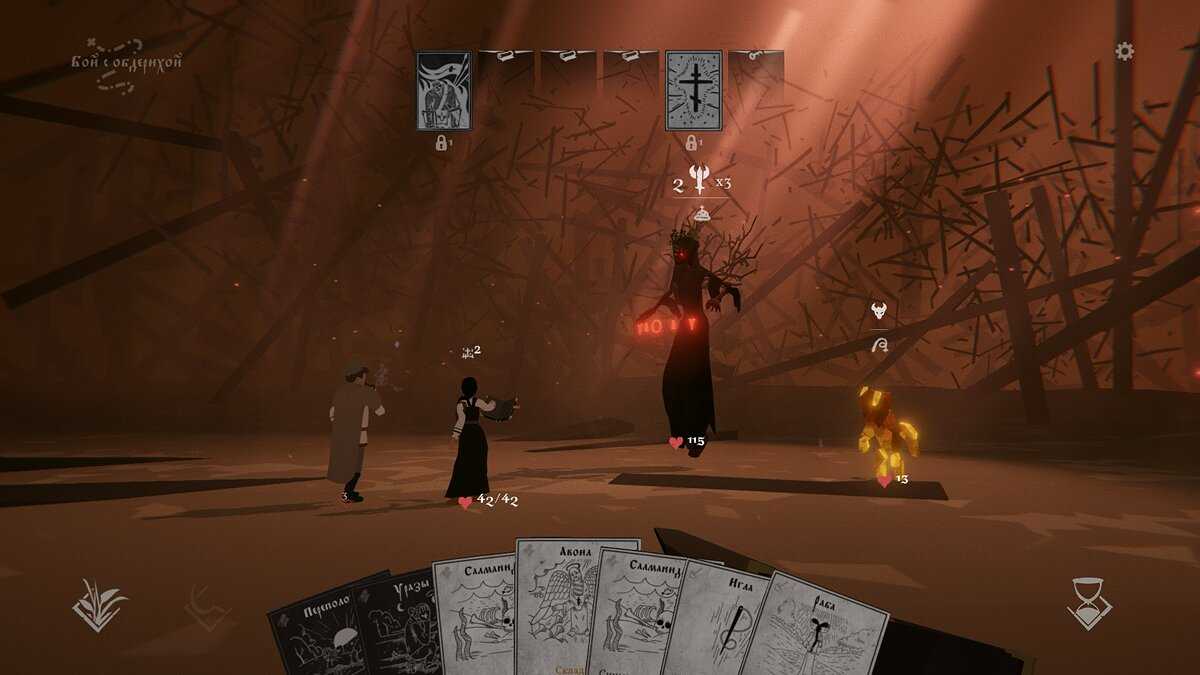 А ещё не с каждым чёртиком можно договориться — сражаться тоже придётся. Боёвка в Black Book карточная: она заставляет продумывать тактику, искать слабости противников и с умом собирать колоду.