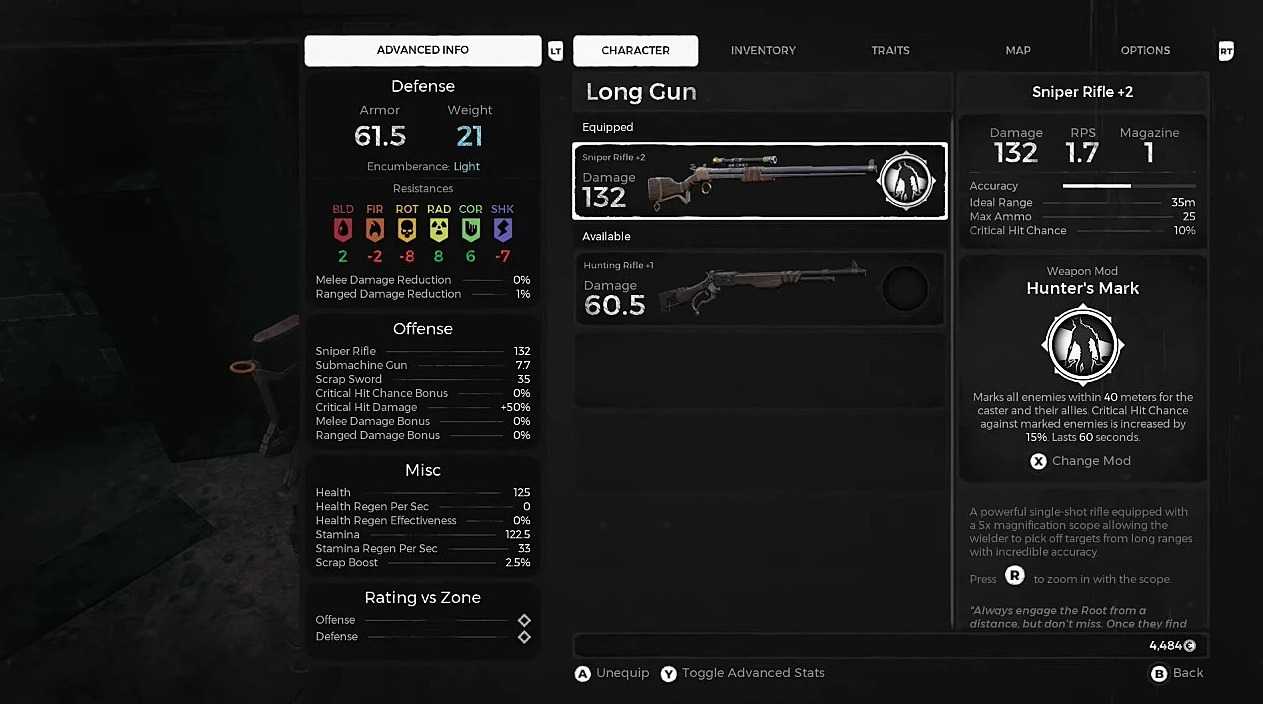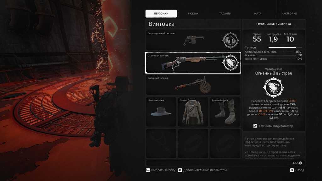 - Основное – Охотничья винтовка. Также большой урон и высокий шанс нанести крит. Помимо этого, отличный показатель точности и емкость магазина больше, чем у предыдущего варианта;