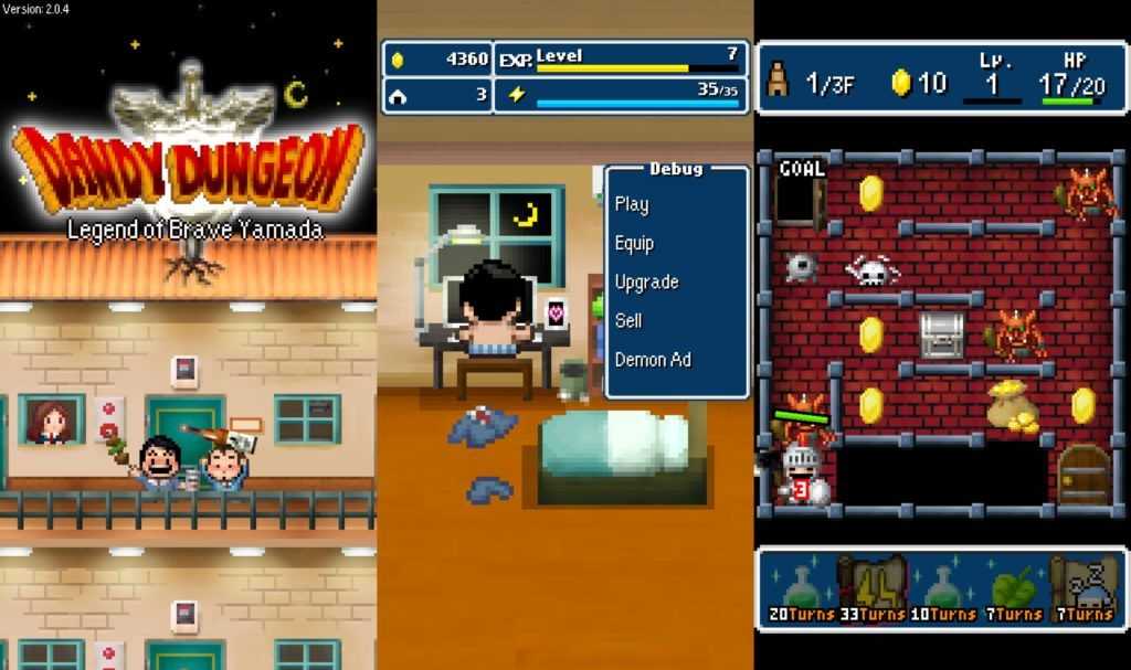 В итоге Dandy Dungeon делится на две части: реальность Ямады и его игру. В реальности вы должны следить за расписанием, общаться и покупать необходимые предметы для достижения целей, а в игре нужно проходить уровни, в которых каждый раз появляется что-то новое. Прохождение уровней работает примерно как головоломка: Ямада-персонаж должен пройти до двери на следующий этаж, не наступая на одни и те же клетки и побеждая монстров. В процессе персонаж растет в уровне и находит разные предметы — и это только в начале игры. Дальше Ямада-автор придумывает все более хитрые и сложные ловушки, навеянные жизненными трудностями, и вы преодолеваете их в игре. Dandy Dungeon — игра, которая постоянно развивается и от нее невозможно оторваться, особенно если вы понимаете английский язык.