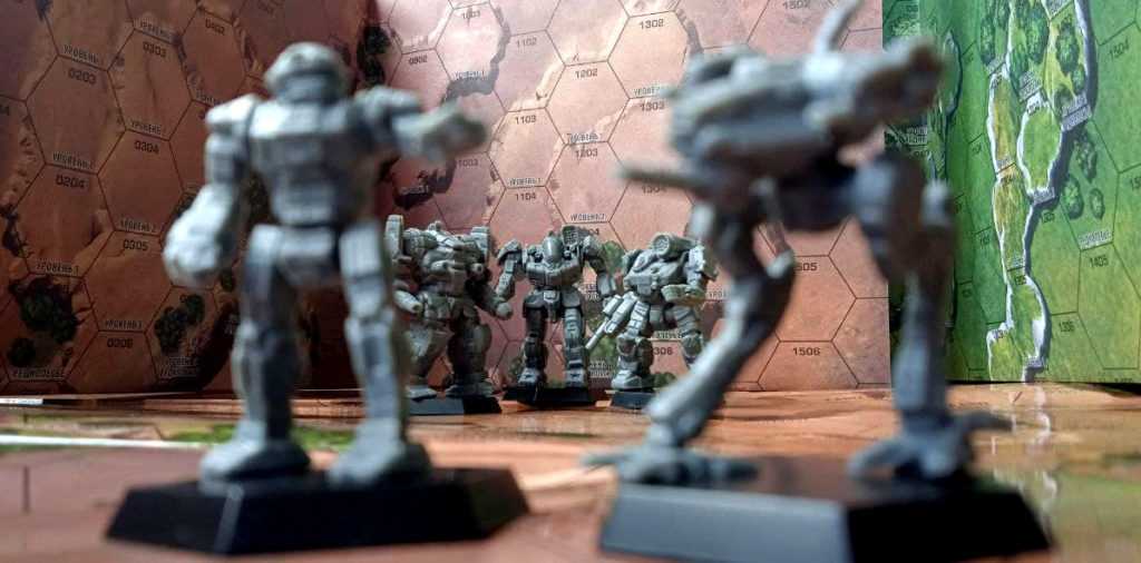 С тяжёлыми и средними мехами ситуация иная. Чтобы расковырять такую консерву потребуется много времени и урона, летящего, желательно (но маловероятно), в одну и ту же часть тела, чтобы в итоге пробить броню и наносить реальный урон там. Следовательно, такие мехи можно не боясь пускать в самую гущу сражения. А так как ни страха за меха, ни молниеносных ходов не происходит, можно отложить эмоции, взглянуть на поле и рассчитать наиболее благоприятный план действий. С такими робокопами длительность партии увеличивается, а динамика снижается. Я бы не советовал начинать знакомство с BattleTech с тяжёлых мехов сразу. Понимаю, они слишком красивы и мощны, чтобы лежать в коробке, но поверьте, эмоции от игры буду намного лучше, когда от первой партии вы не устанете морально, а наоборот с огоньком повоюете и заодно ознакомитесь с процессом.
