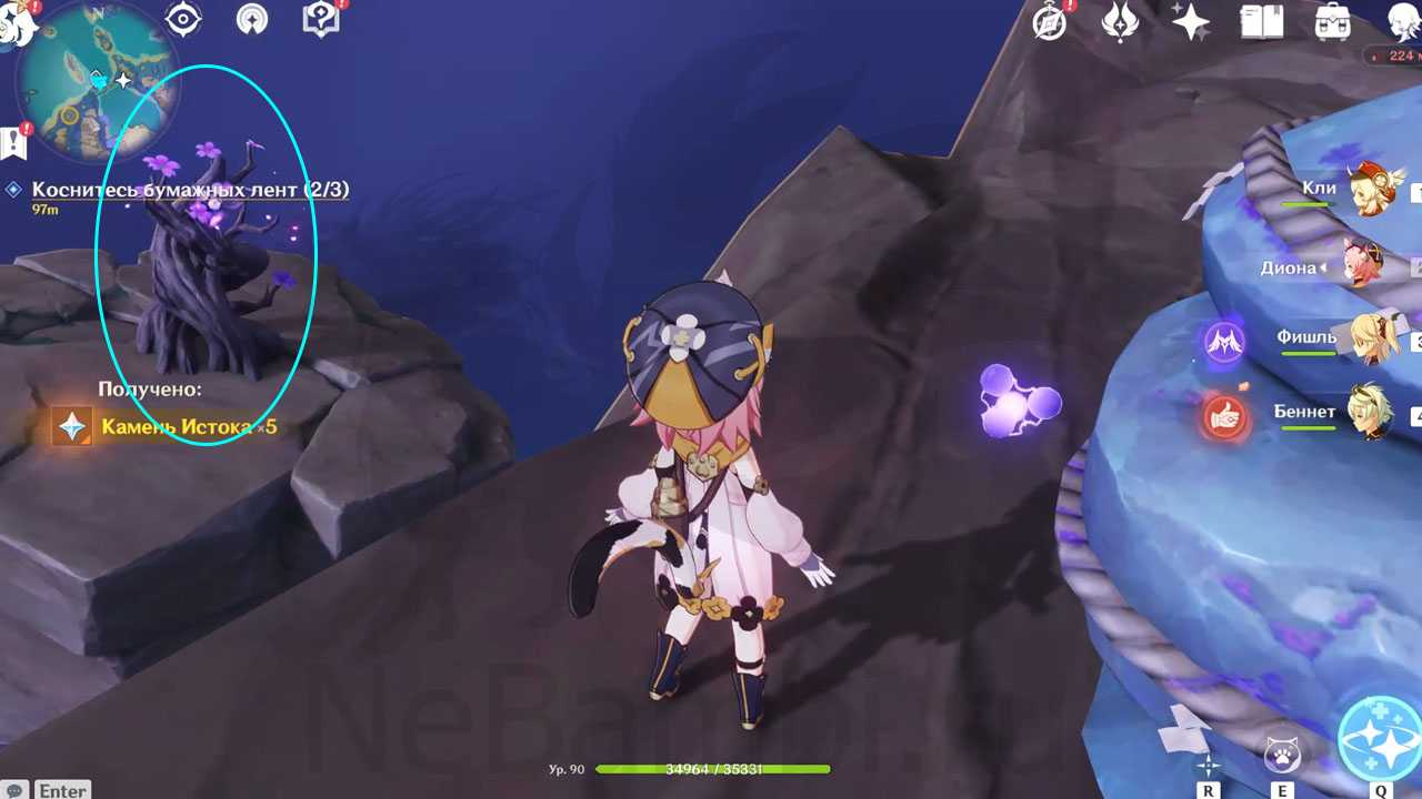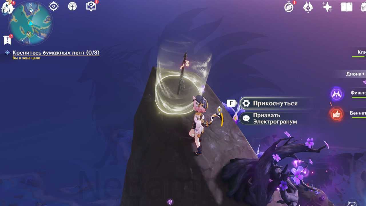 Теперь идите к квестовому маркеру и поговорите с Эйко. Неподалеку от нее можете также активировать якорную стоянку. От искательницы приключений узнаем о запирающем камне, который вам нужно будет исследовать, чтобы разгадать тайну молний.