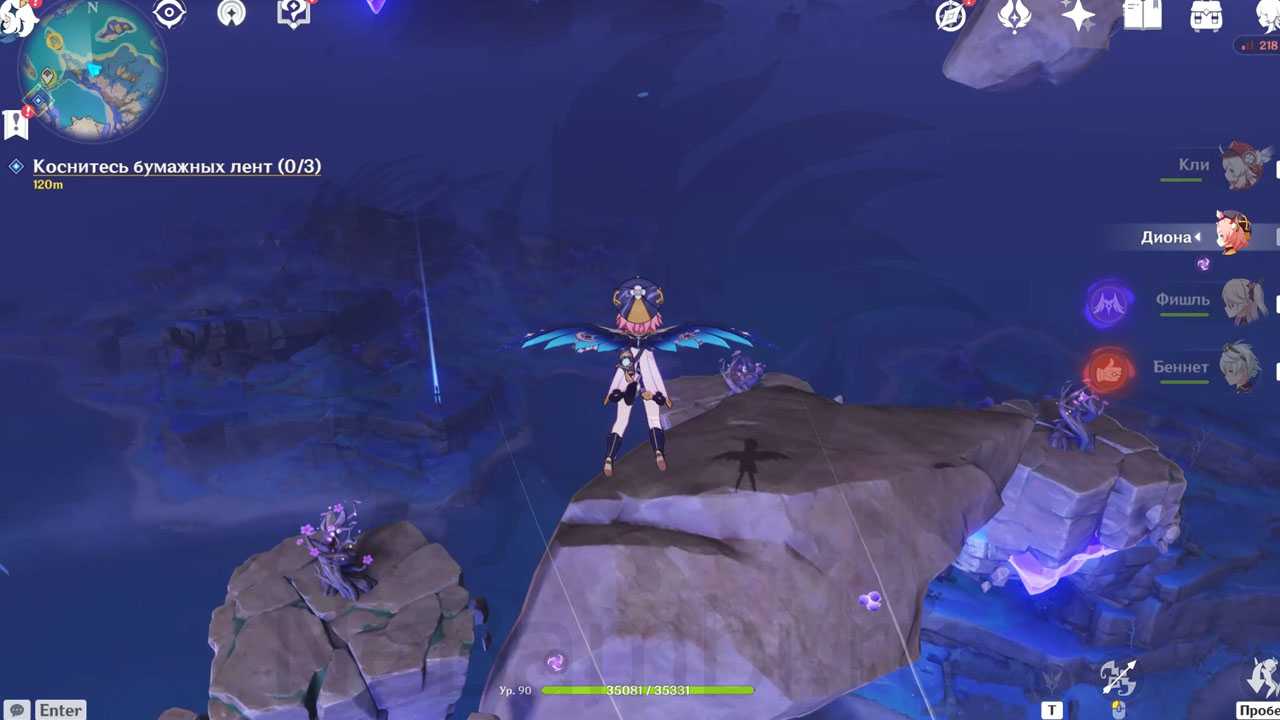 Снова берем Электрогранум и летим. Бежим по камням до сундуков и пера.