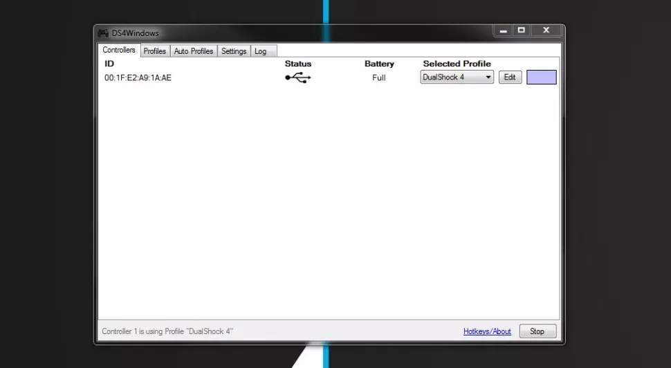 5. Откройте DS4Windows, и вы увидите вкладку «Контроллеры». На этой вкладке отображаются подключенные контроллеры. Поскольку вы уже подключили контроллер (или подключили его через Bluetooth), он должен быть указан здесь. Если это не так, закройте DS4Windows, повторно подключите контроллер, затем снова откройте DS4Windows. Не беспокойтесь об идентификационном номере вашего контроллера; нам это не понадобится.