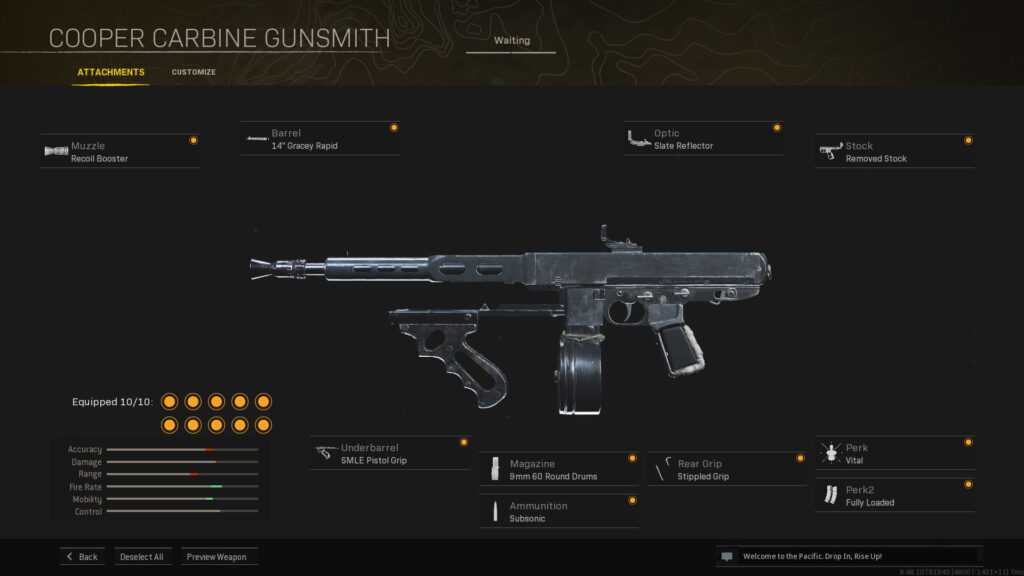 В качестве оружия, которое эффективно на близких и средних дистанциях, Cooper Carbine от Vanguard Season 1 остается чрезвычайно мощным выбором в Warzone Pacific. У него отличная скорость ADS, скорость пули и практически отсутствует отдача.