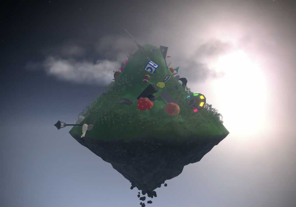 Mountain остается игрой только в том смысле, что всё же это компьютерная программа, внутри которой что-то происходит. Гора каждый раз генерируется процедурно: это значит, что у каждого игрока своя уникальная гора. На ней случайным образом появляются разные предметы: летающая тарелка, уличный фонарь или детский кубик.