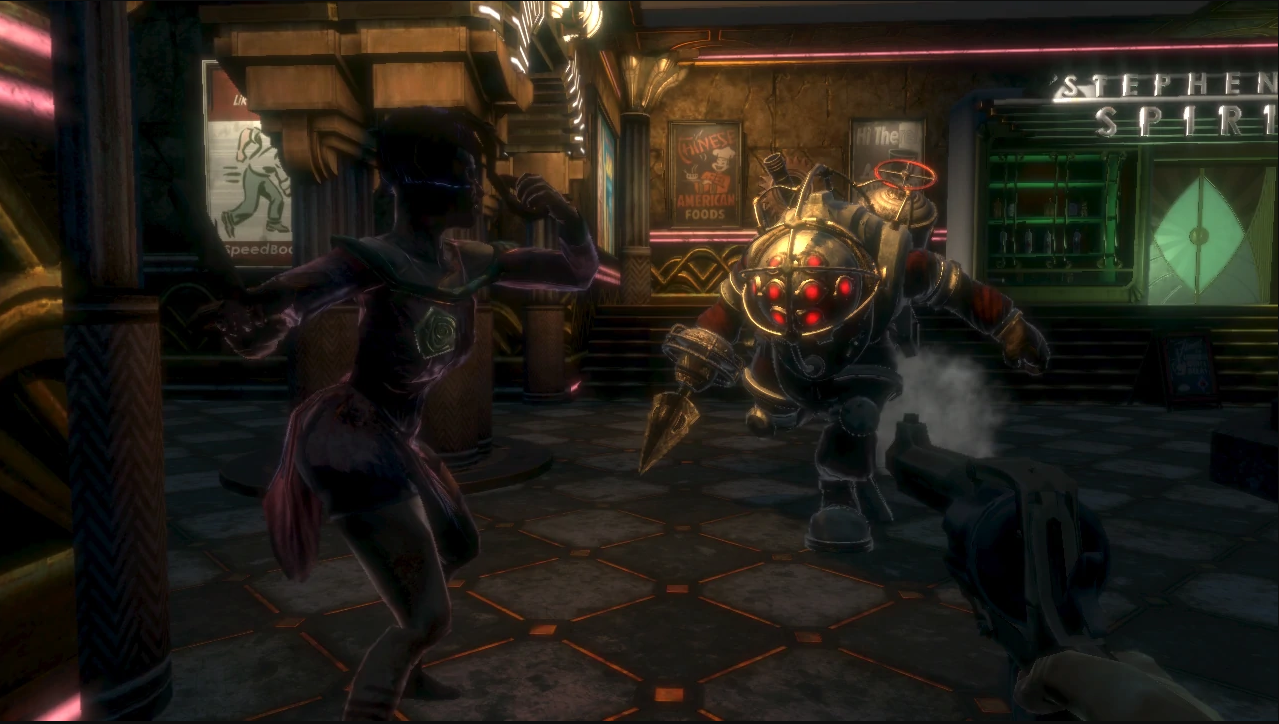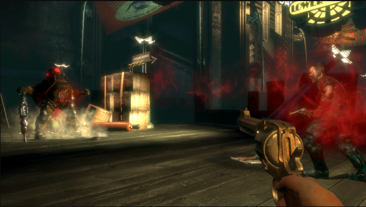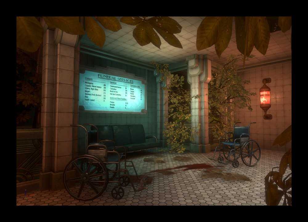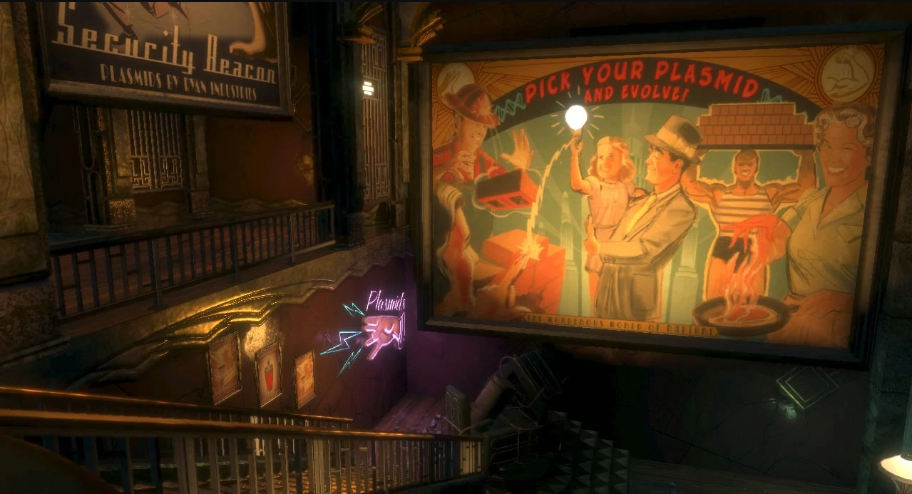 Атмосфера. Внутриигровая вселенная проработана до мельчайших деталей. Разработчики смогли воссоздать самый настоящий подводный город, который переживает не лучшие свои годы. Всюду можно найти потрёпанную мебель, старые плакаты, протекающие трубы, которые создают уникальную атмосферу Утопии, которая обрушилась. Очень необычно исследовать игровые локации и представлять, какой же интересной была жизнь до падения Эндрю Райана.