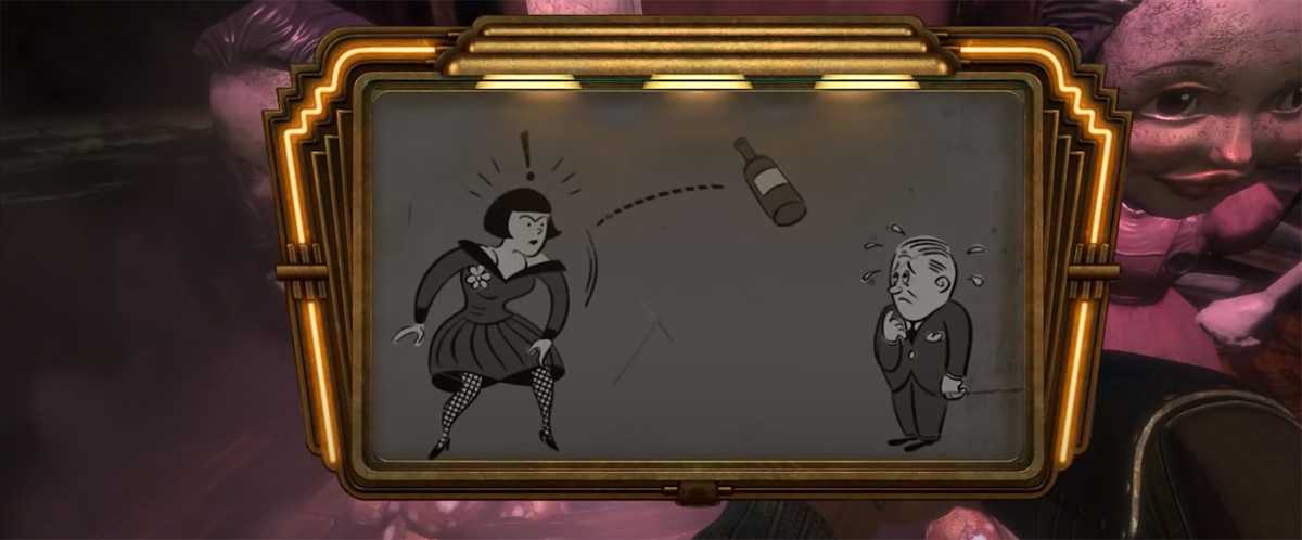 У разработчиков было так много активов от уровня Форт Весёлый, что было решено преобразовать эту пустую комнату в маленькое “театральное заведение”, чтобы дать Большому Папочке и Маленькой Сестричке показать, дословно говоря, театральное представление.