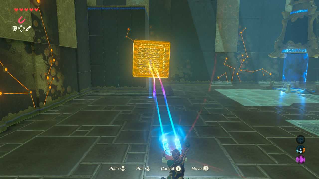 Если все сделано правильно, мяч в конечном итоге приземлится в нужном месте и взлетит в приемник. Теперь вы можете создавать ледяные блоки на стене, чтобы перенести вас туда, где хорошо виден сундук с сокровищами. Откройте его, чтобы получить гигантское древнее ядро, затем идите к монаху, чтобы забрать эмблему Руты.