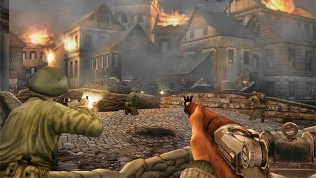 CoD2 чувствует себя немного более обтекаемый и продуманный по сравнению с первой игрой, но все еще изобилует гранатами, летящими со всех сторон, и немцами, которые отточили свои навыки с помощью Матрицы.