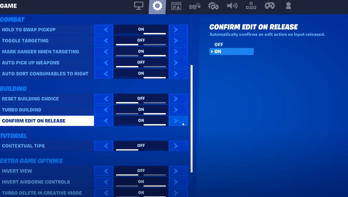 Мы уже писали вам, что вы должны настраивать раскладку Fortnite исключительно под себя и свои нужды. Однако функция «Confirm Edit On Release» – будет для вас крайне полезной в любом случае. Да, если вы включите данную функцию, то потеряете скорость в бокс-файтах, но в случае с редактированием – это намного ускорит данный процесс.